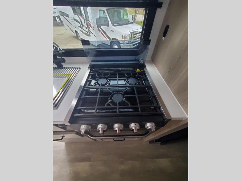 You're going to love camping with your family or friends in this largest bunk model in the GEO Pro lineup. The bunk beds will be perfect for little ones, while you take the front full-size bed. There is also a 44" booth dinette within the slide out for additional sleeping and seating space. The kitchen includes everything the chef will need to prepare meals each day, including a gas oven a microwave oven, and a 12V refrigerator for perishables. If the weather is nice, you may just find the chef outdoors cooking on the outside griddle under the 14' power awning. And check out the exterior bike door that will be perfect for bikes, luggage, or extra camp gear. The optional Power Package available on this model includes three 200W solar panels, a 30 Amp solar charge controller, two Mastervolt smart remotes, and more off-grid features!