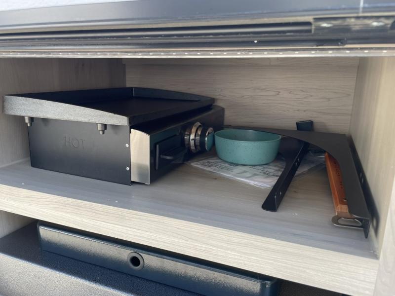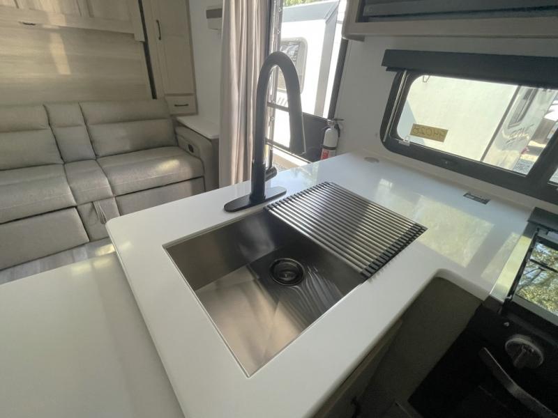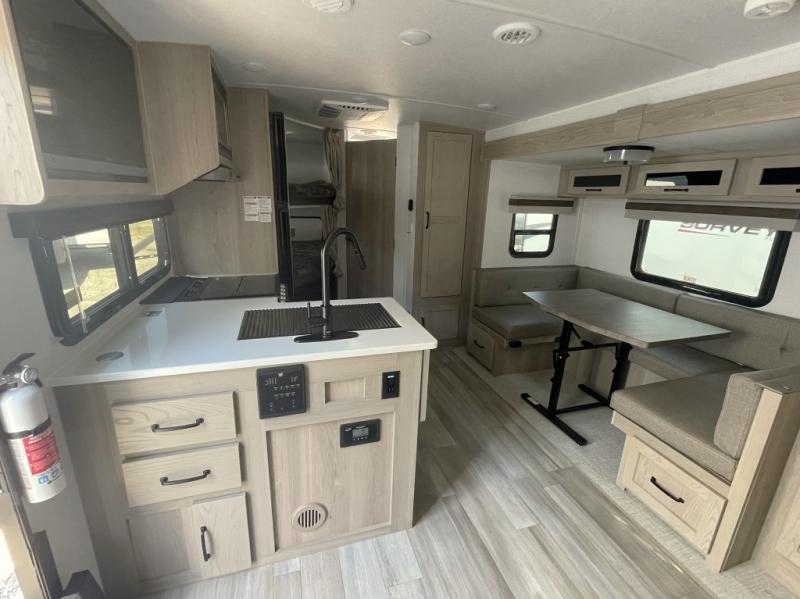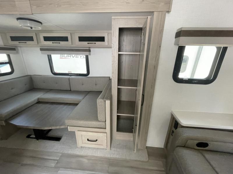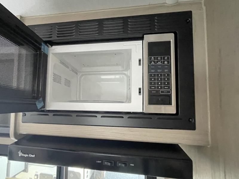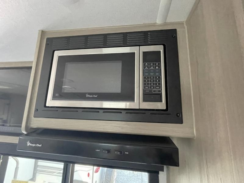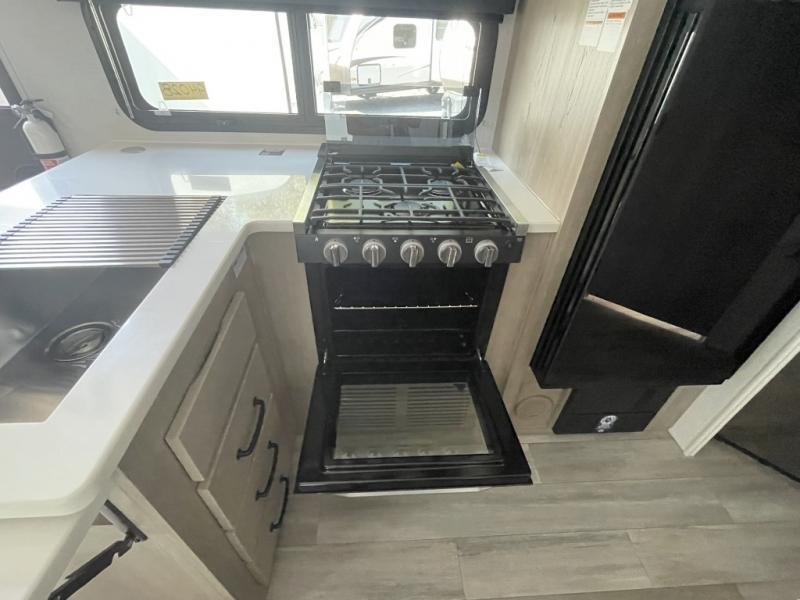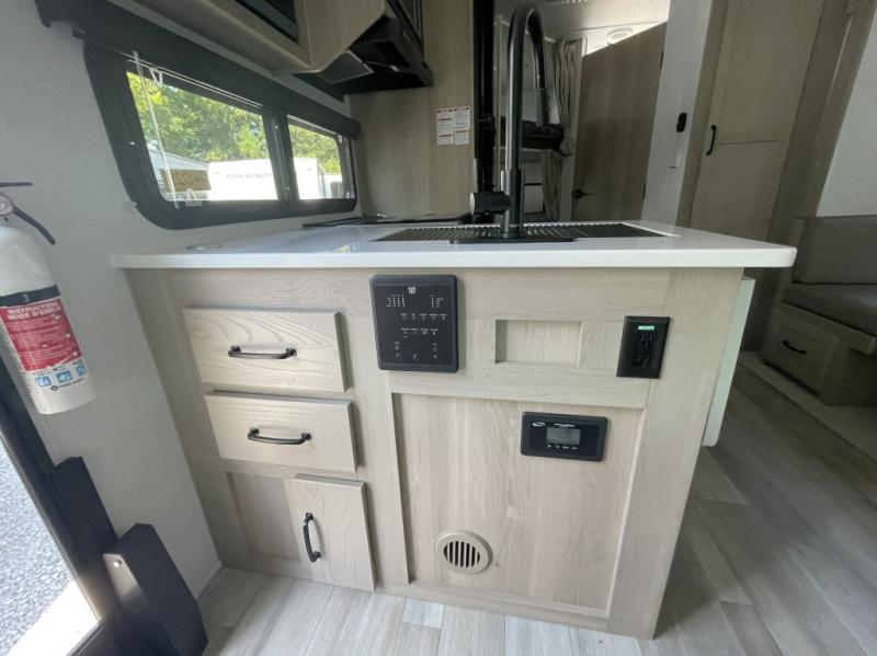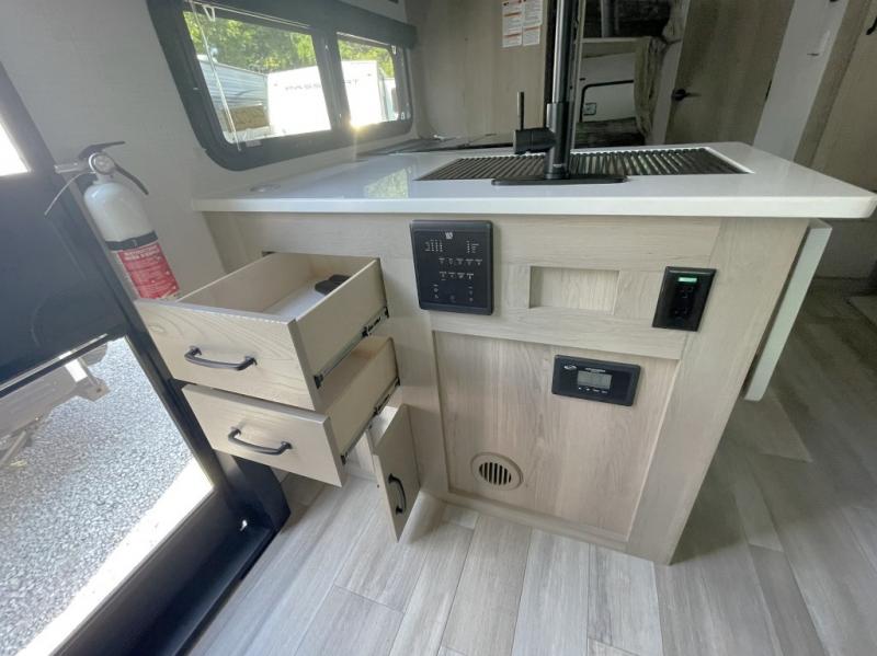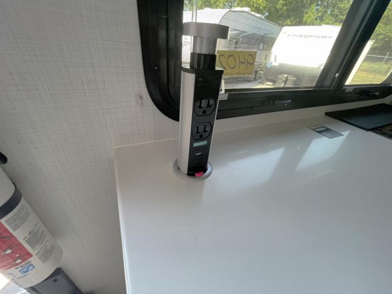 Stay off the grid longer with a 200 watt roof mounted solar panel, and stay connected with the Air 360 plus antenna with wifi prep. Inside, enjoy solid surface kitchen counters, real wood cabinet doors, and night roller shades that add comfort and style to every trip.
