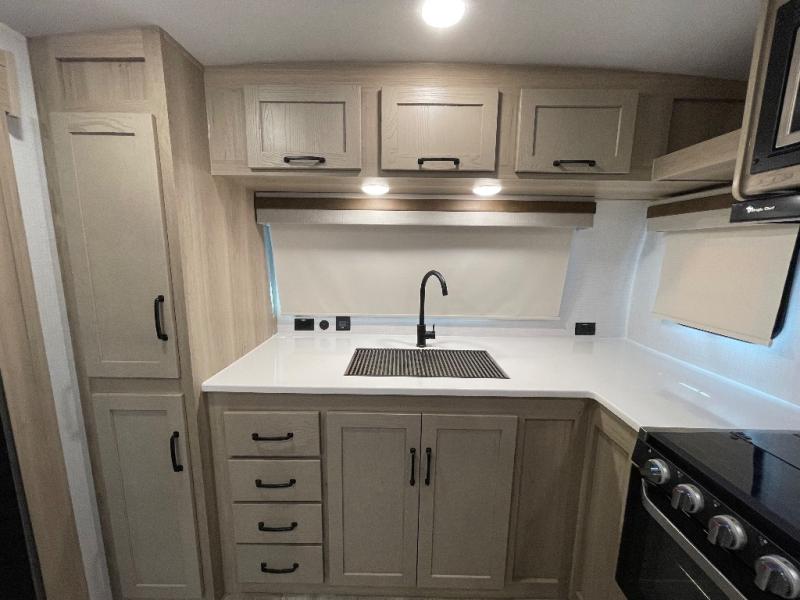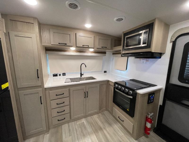 Each Rockwood Mini Lite travel trailer by Forest River is constructed with a fully laminated one-piece walkable roof, sleek frameless windows, and a six-sided full aluminum frame for strength and durability. The 12V thermostatically controlled heated tanks, plus radiant foil in the underbelly, front caps, and slide out floors will allow you to camp well into the colder months, and the 200W roof solar panel will be perfect for a little off-gridding. Each model includes solid surface kitchen countertops, solid wood cabinet doors, night roller shades, plus many more interior features. Having an Air 360+ omnidirectional antenna with wifi prep on board will allow you to get some work done if it's needed, and the power tongue jack provides hassle-free set up, so you can enjoy more time relaxing!