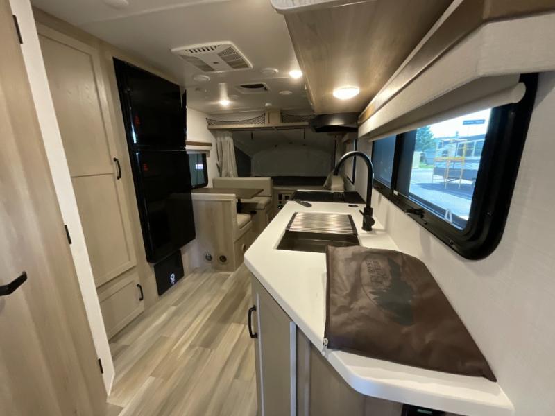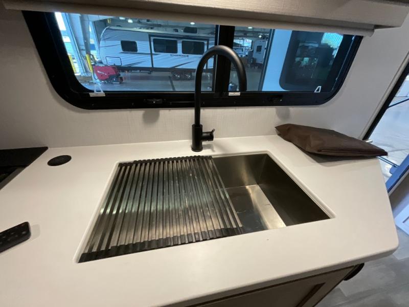 The moment you open the expandable bed ends, you unlock a wide, airy interior with plenty of room to relax. Each sleeping area is supported by Forest River’s signature vacuum-laminated construction and heated cushions, giving you reliable comfort through multiple seasons. Inside, you’ll find a beautifully modern layout with rich cabinetry, seamless countertops, and residential touches that make this hybrid feel like home.