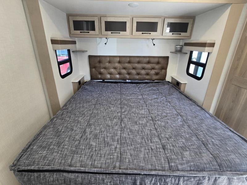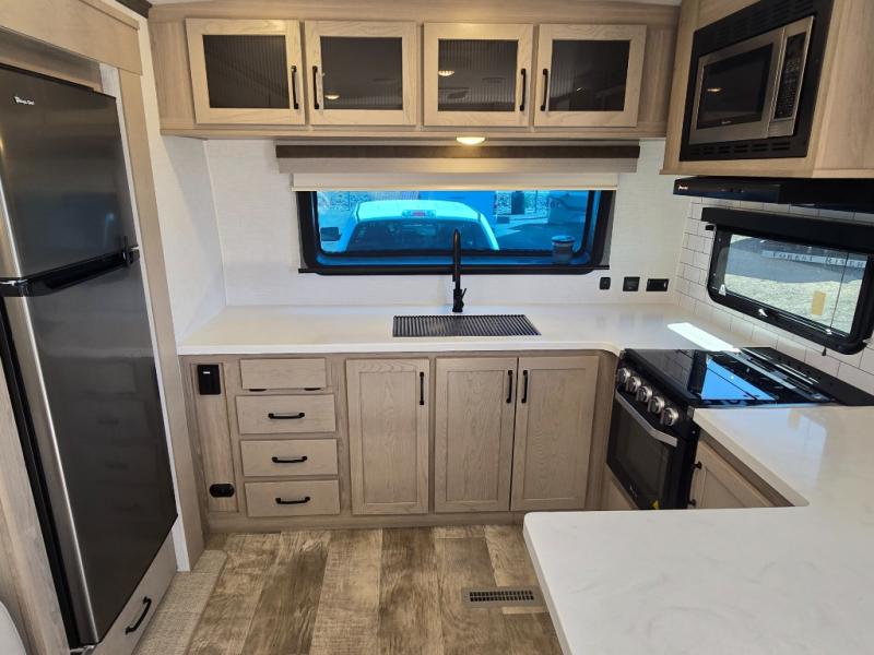 With any Rockwood Signature fifth wheel or travel trailer by Forest River RV, you will enjoy superior construction that includes laminated white fiberglass sidewalls, a radius roof with vaulted interior ceilings, plus radiant foil insulation and an enclosed underbelly for use in all types of weather. Some convenient exterior features include a power tongue jack, a torsion axle, Rubber-Ryde suspension, and a tire pressure monitor system with a monitor for added safety. The interior offers a One Touch OneControl panel with WeRV app control, for lights, awning, slides, water heater and more, and the Air 360+ omnidirectional antenna with WiFi prep lets you work while away from home if needed. You will also appreciate the interior vaulted ceilings, residential soft close doors and drawers, solid surface kitchen countertops, and designer kitchen backsplash!