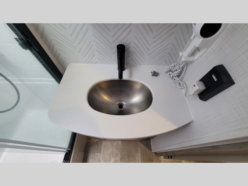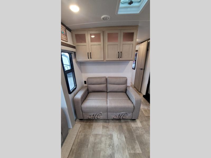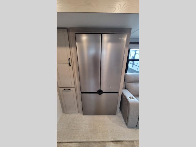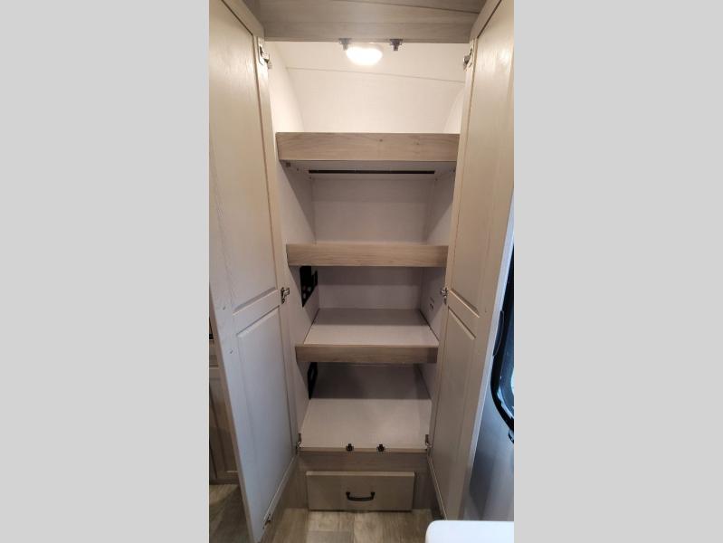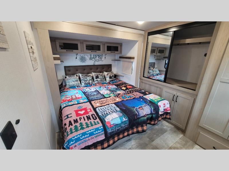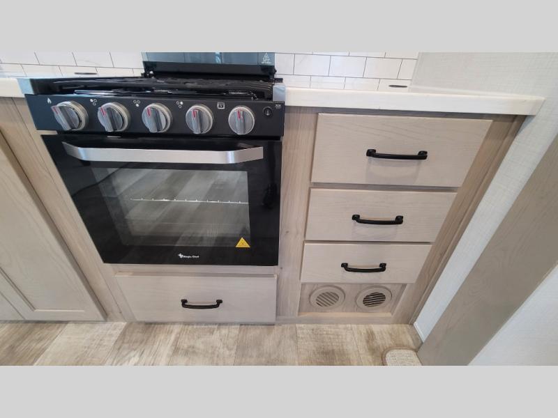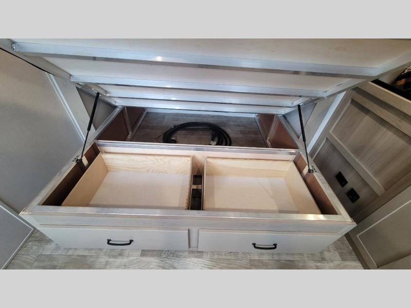With any Rockwood Signature fifth wheel or travel trailer by Forest River RV, you will enjoy superior construction that includes laminated white fiberglass sidewalls, a radius roof with vaulted interior ceilings, plus radiant foil insulation and an enclosed underbelly for use in all types of weather. Some convenient exterior features include a power tongue jack, a torsion axle, Rubber-Ryde suspension, and a tire pressure monitor system with a monitor for added safety. The interior offers a One Touch OneControl panel with WeRV app control, for lights, awning, slides, water heater and more, and the Air 360+ omnidirectional antenna with WiFi prep lets you work while away from home if needed. You will also appreciate the interior vaulted ceilings, residential soft close doors and drawers, solid surface kitchen countertops, and designer kitchen backsplash!