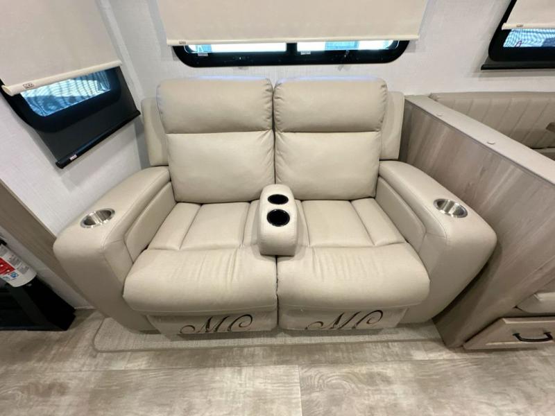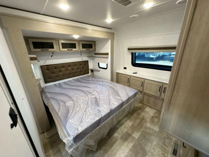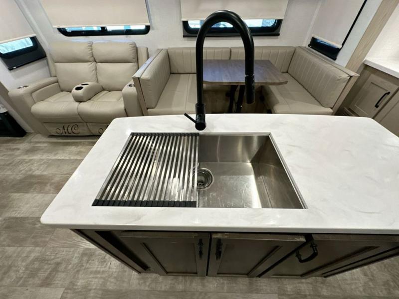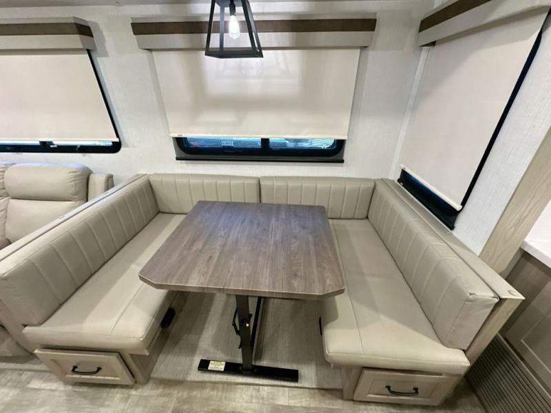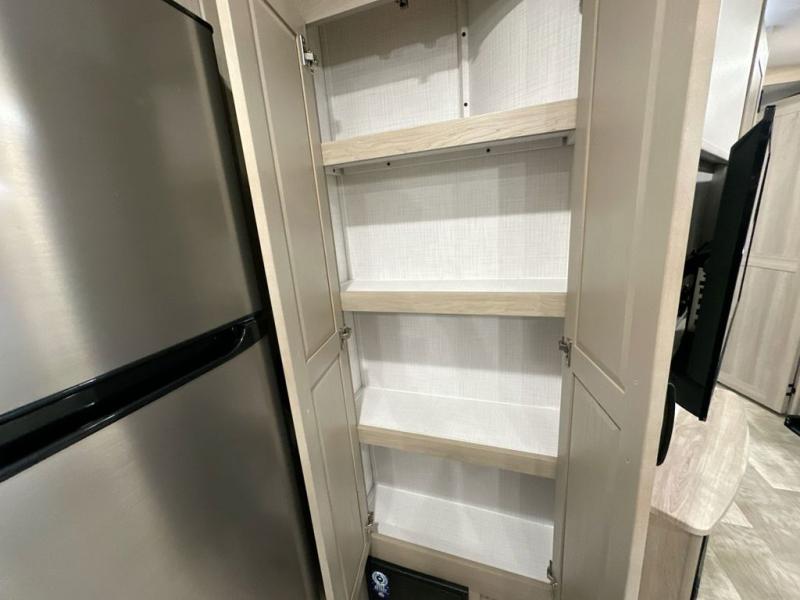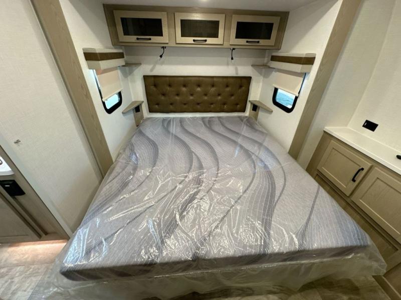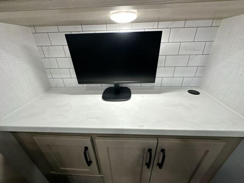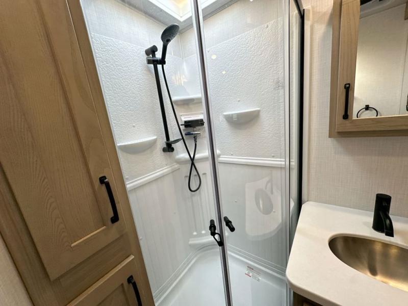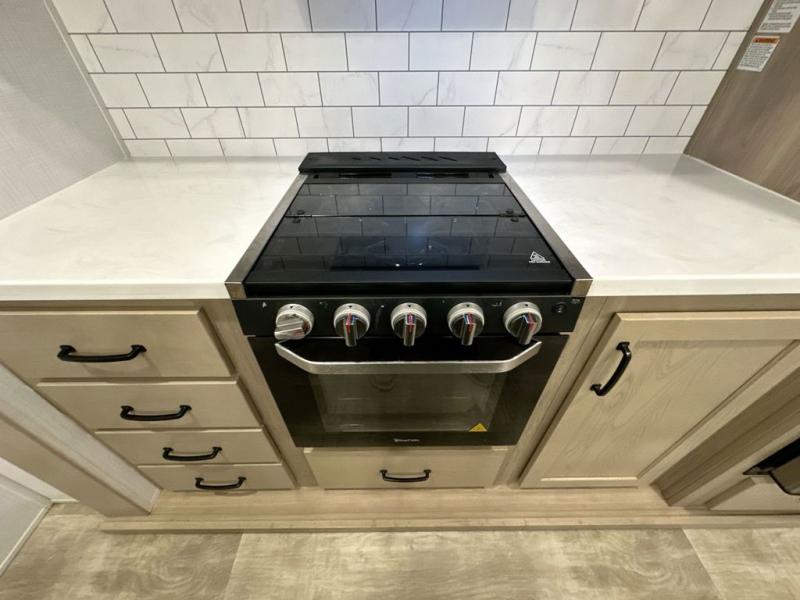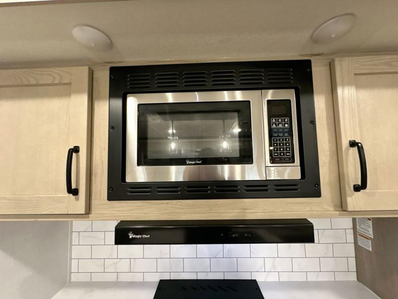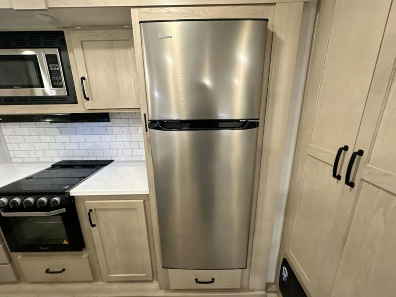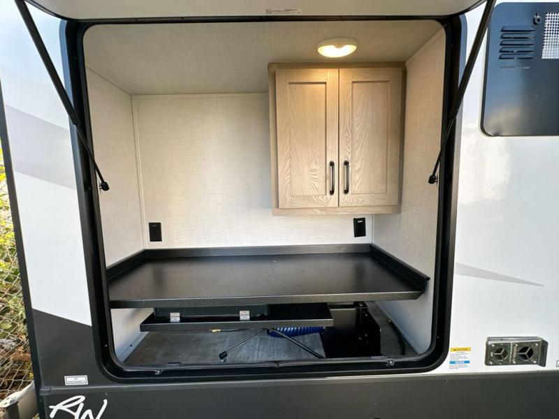 With any Rockwood Signature fifth wheel or travel trailer by Forest River RV, you will enjoy superior construction that includes laminated white fiberglass sidewalls, a radius roof with vaulted interior ceilings, plus radiant foil insulation and an enclosed underbelly for use in all types of weather. Some convenient exterior features include a power tongue jack, a torsion axle, Rubber-Ryde suspension, and a tire pressure monitor system with a monitor for added safety. The interior offers a One Touch OneControl panel with WeRV app control, for lights, awning, slides, water heater and more, and the Air 360+ omnidirectional antenna with WiFi prep lets you work while away from home if needed. You will also appreciate the interior vaulted ceilings, residential soft close doors and drawers, solid surface kitchen countertops, and designer kitchen backsplash!
