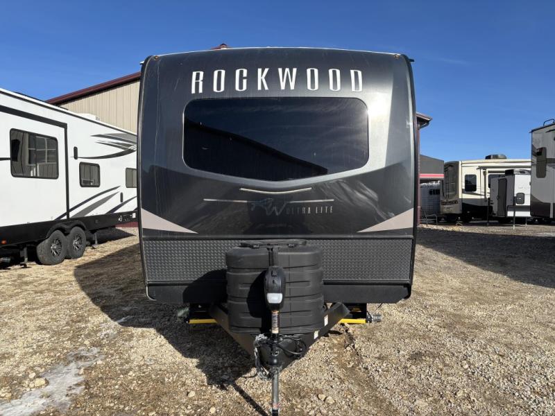 Each Rockwood Ultra Lite travel trailer by Forest River includes superior construction with a high gloss front cap, laminated white fiberglass sidewalls, and tinted frameless windows for a sleek look. You will love how easy it will be to charge a few electronics with the 200W roof solar panel with an 1800W inverter, and the AIR 360+ omnidirectional antenna with WiFi prep will let you stay connected to the outside world as you camp. The torsion axle, Rubber-Ryde suspension will make towing smooth and hassle-free, along with the nitrogen filled, Goodyear Endurance tires and the tire pressure monitor system. Interior comforts include designer kitchen backsplash, solid wood cabinet doors with hidden hinges, and night roller shades to name a few. Choose a Rockwood Ultra Lite travel trailer today!