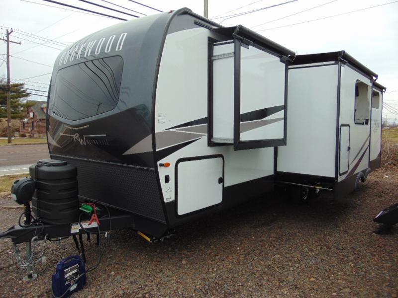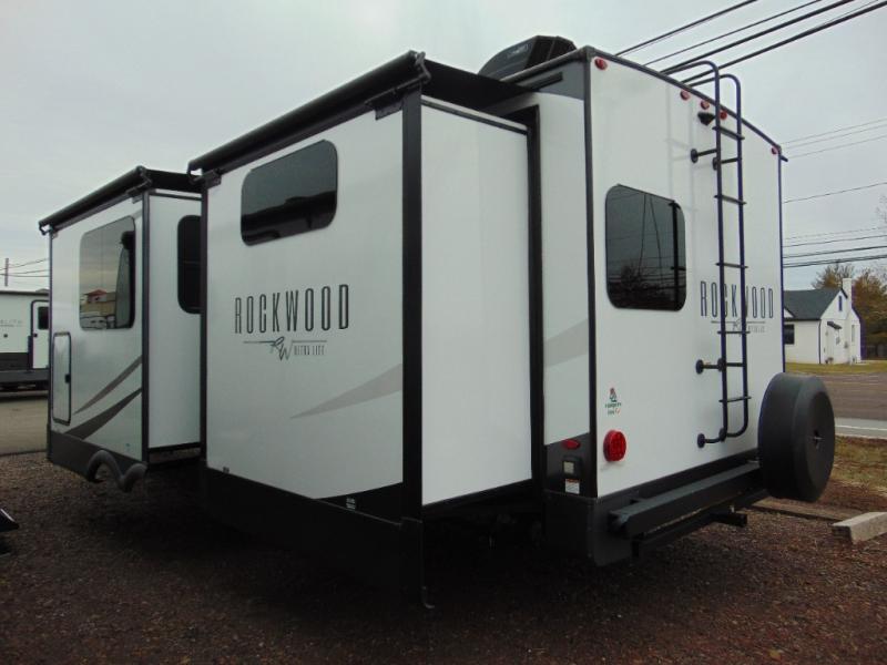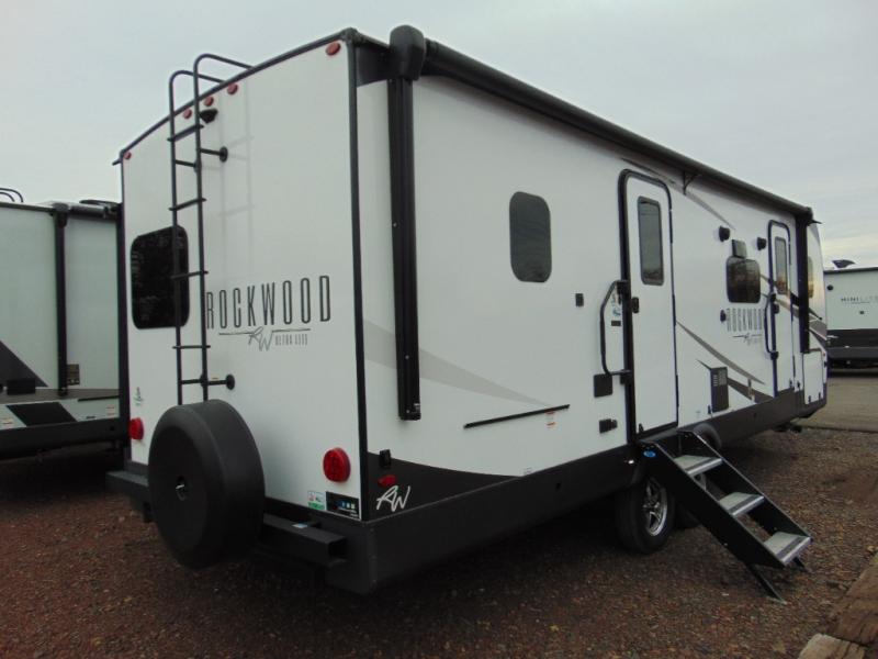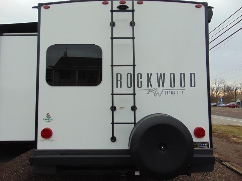 Each Rockwood Ultra Lite travel trailer by Forest River includes superior construction with a high gloss front cap, laminated white fiberglass sidewalls, and tinted frameless windows for a sleek look. You will love how easy it will be to charge a few electronics with the 200W roof solar panel with an 1800W inverter, and the AIR 360+ omnidirectional antenna with WiFi prep will let you stay connected to the outside world as you camp. The torsion axle, Rubber-Ryde suspension will make towing smooth and hassle-free, along with the nitrogen filled, Goodyear Endurance tires and the tire pressure monitor system. Interior comforts include designer kitchen backsplash, solid wood cabinet doors with hidden hinges, and night roller shades to name a few. Choose a Rockwood Ultra Lite travel trailer today!