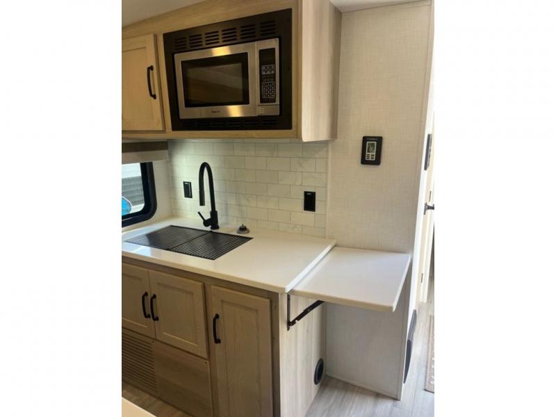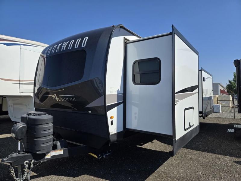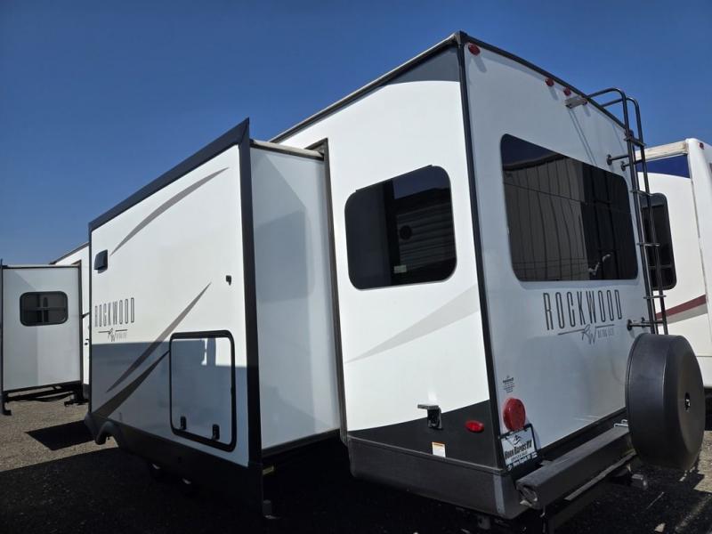 Each Rockwood Ultra Lite travel trailer by Forest River includes superior construction with a high gloss front cap, laminated white fiberglass sidewalls, and tinted frameless windows for a sleek look. You will love how easy it will be to charge a few electronics with the 200W roof solar panel with an 1800W inverter, and the AIR 360+ omnidirectional antenna with WiFi prep will let you stay connected to the outside world as you camp. The torsion axle, Rubber-Ryde suspension will make towing smooth and hassle-free, along with the nitrogen filled, Goodyear Endurance tires and the tire pressure monitor system. Interior comforts include designer kitchen backsplash, solid wood cabinet doors with hidden hinges, and night roller shades to name a few. Choose a Rockwood Ultra Lite travel trailer today!