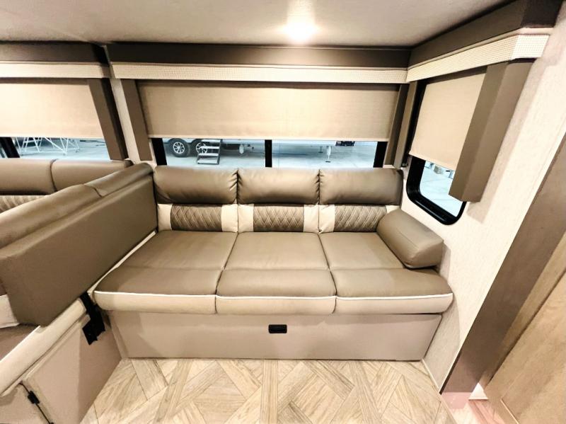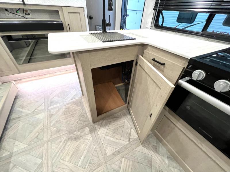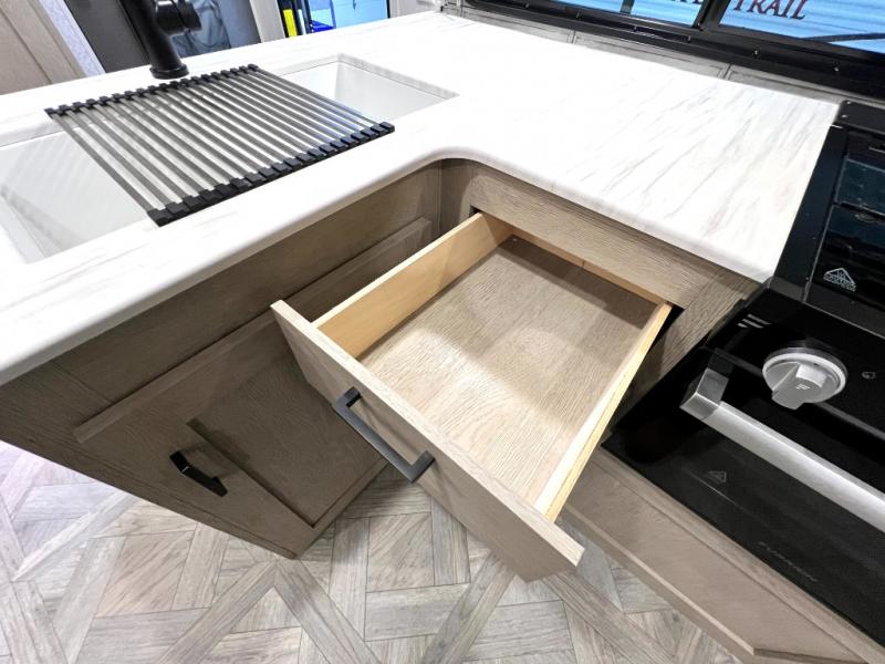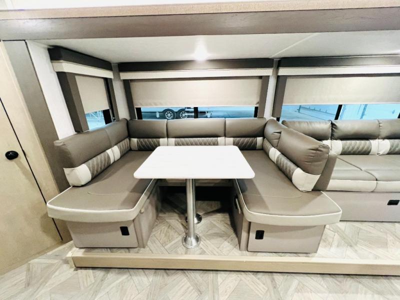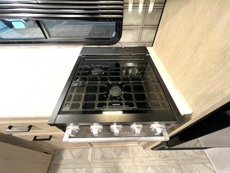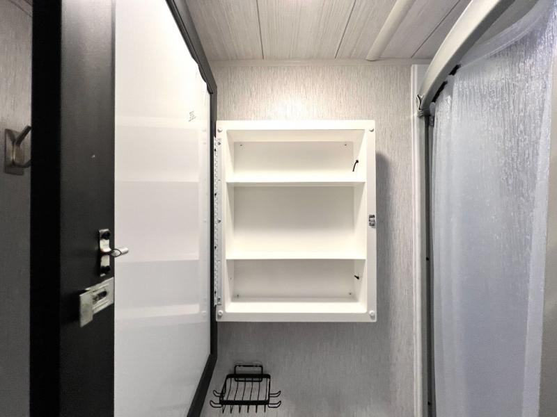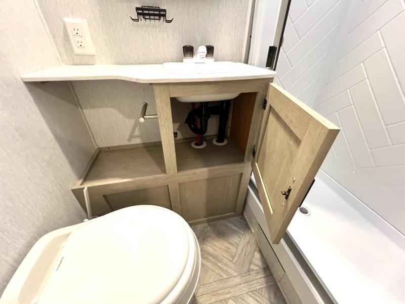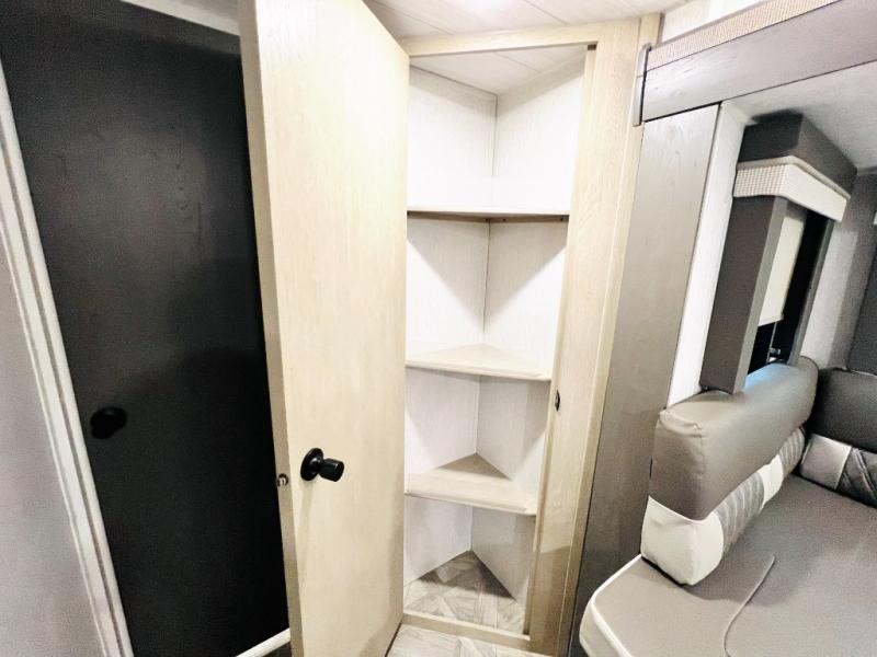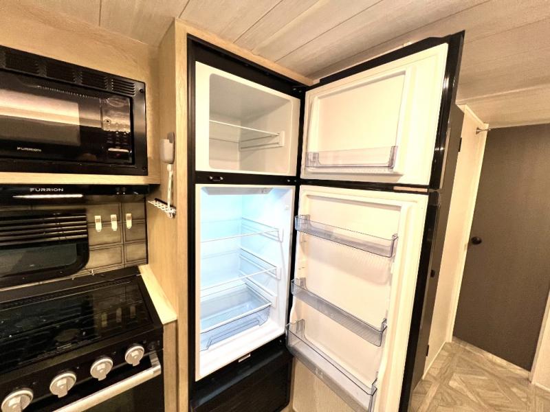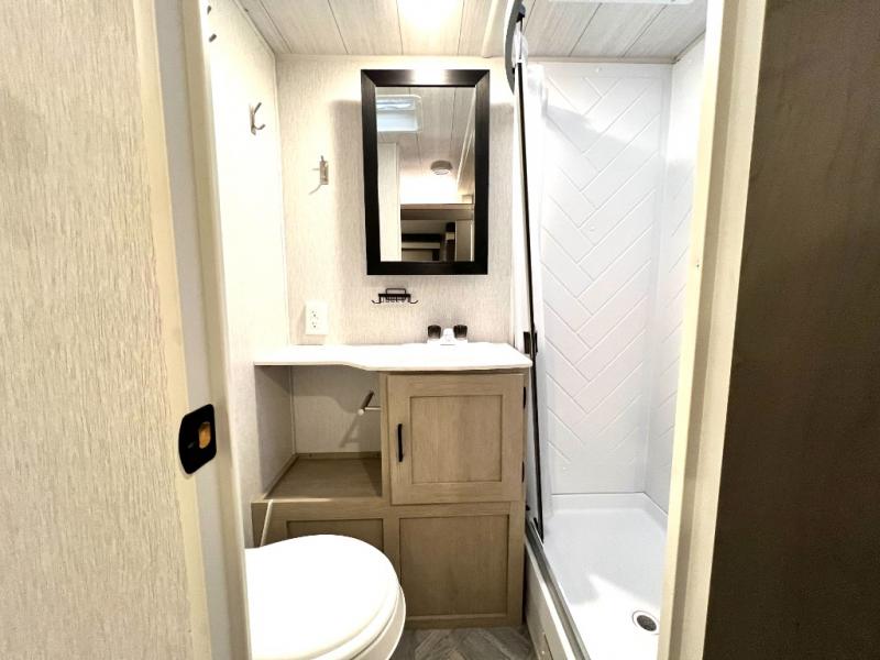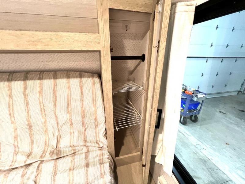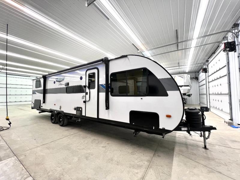 This versatile bunkhouse travel trailer is big enough for the whole family, but still light in weight! The private bunkhouse has a set of 30" x 74" bunk beds and a 30" x 74" bunk bed above a Jiffy sofa. Just outside the bunkhouse is a pantry big enough to store everyone's favorite snacks, and a full bathroom with a walk-in shower. The three burner cooktop is just waiting for you to create a delicious meal, and the U-shaped dinette welcomes everyone to enjoy each meal in comfort, plus there is a large panoramic window for a perfect view of your surroundings. Any time of day kick back on the Versa-lounge and relax by the fireplace at the entertainment center. The exterior features a pass-through storage area for you to keep your outdoor camping gear stowed away when not in use, a 16' power awning to protect you, and an exterior camp kitchen!