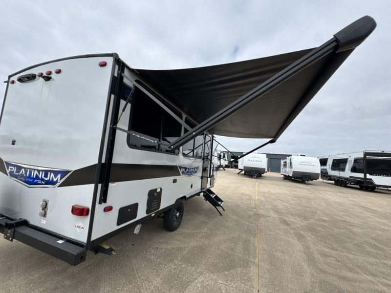 The Forest River Salem FSX travel trailers and toy hauler travel trailers are ultra comfortable and lightweight, perfect for first time or seasoned campers alike! You will love how easy it will be to relax with residential features that will make your space feel just like home, and the durable construction means you can enjoy your RV for years to come. There are a wide variety of floorplans to choose from, including couple's trailers, bunk models, and toy haulers, all with full bath and kitchen amenities and plenty of storage for all your gear!