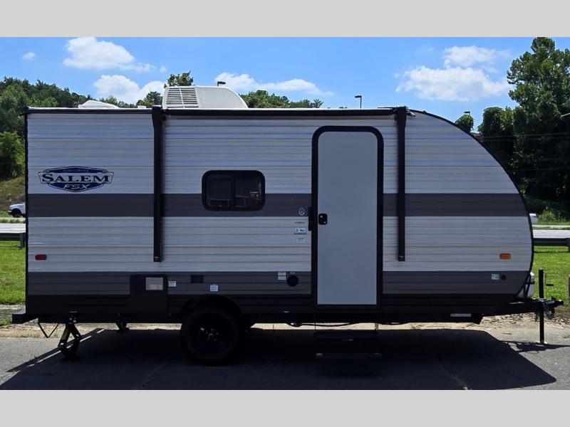 The Forest River Salem FSX travel trailers and toy hauler travel trailers are ultra comfortable and lightweight, perfect for first time or seasoned campers alike! You will love how easy it will be to relax with residential features that will make your space feel just like home, and the durable construction means you can enjoy your RV for years to come. There are a wide variety of floorplans to choose from, including couple's trailers, bunk models, and toy haulers, all with full bath and kitchen amenities and plenty of storage for all your gear!
