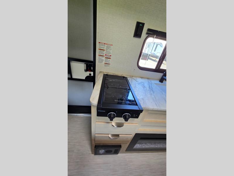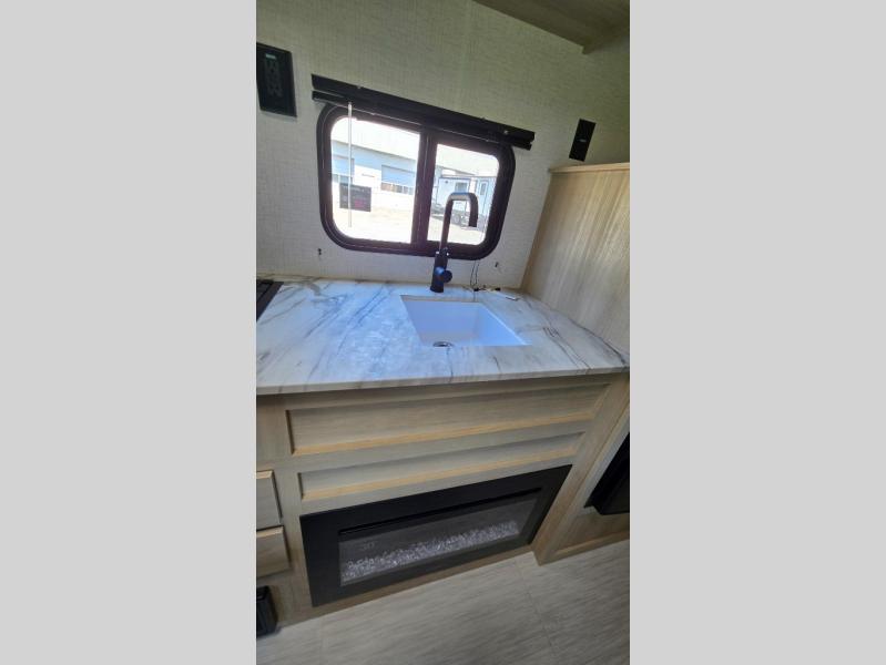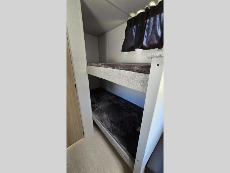 Camping is made easy in this Limited Edition Value trailer that can sleep five to six each night thanks to the bunk beds, front queen bed, and sofa! There is a private shower and toilet so you can freshen up each day, and a kitchen with a two burner cooktop to make meals. You will appreciate the 5,000 BTU fireplace for heating, the 13,500 BUT roof mounted A/C to keep you cool all summer long, and the DSI water heater for hot water when you need it. You will also find a large baggage door for exterior storage, a powder coated I-beam chassis for durability, plus backup camera prep to make parking easier!