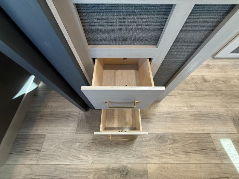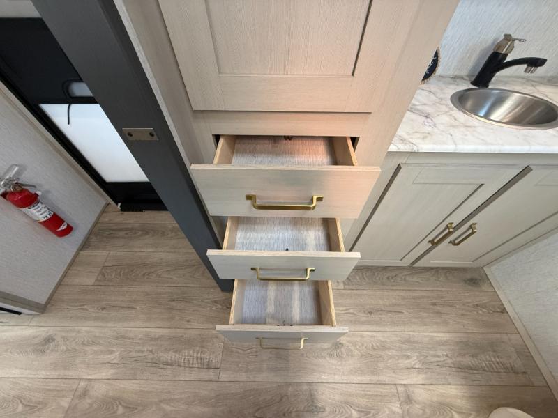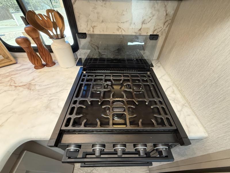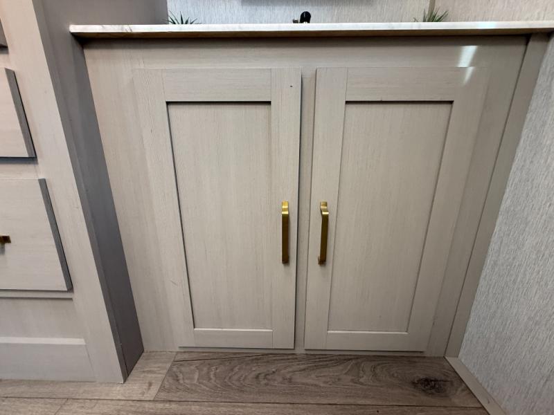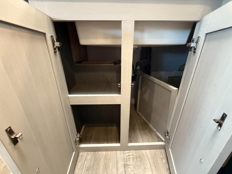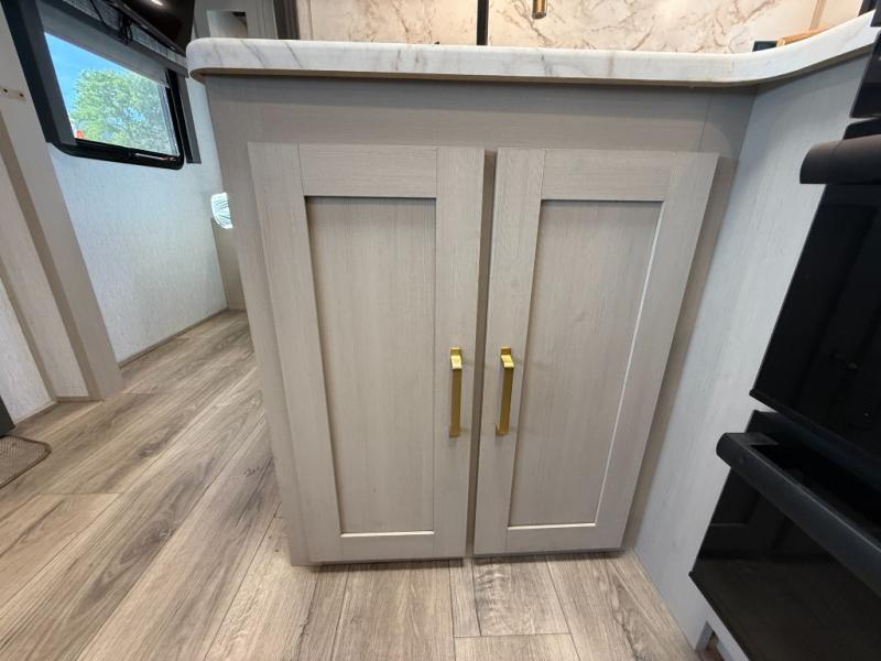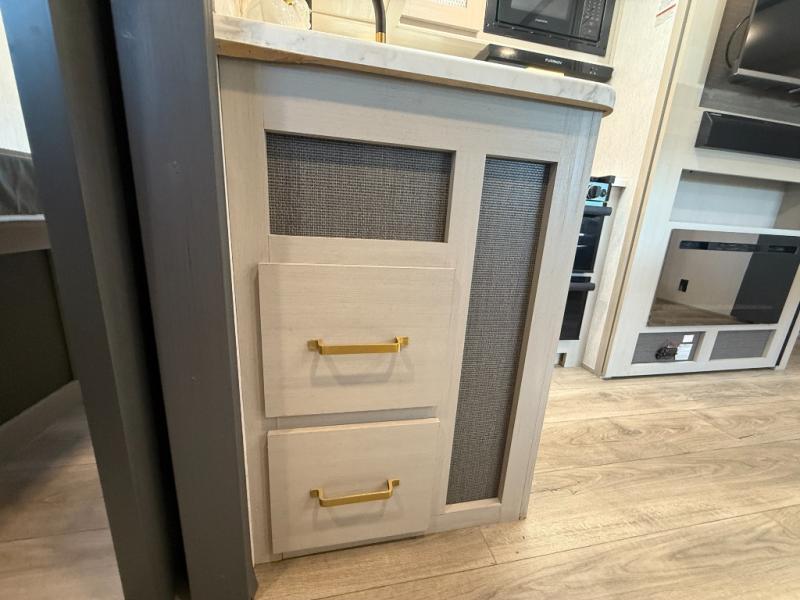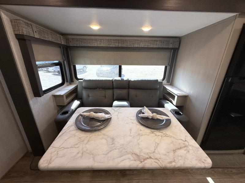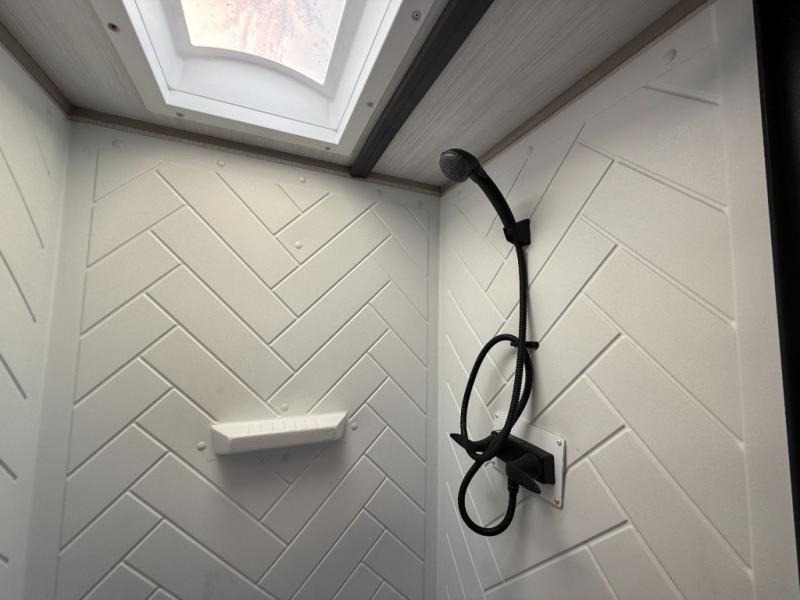 With any Salem Hemisphere Hyper-Lyte travel trailer by Forest River, you will appreciate a wide stance axle and Goodyear radial tires for smooth towing, plus vacuum bonded "Aluma Frame" sidewalls and floor for added durability. There are also square windows with built-in shades with reflecting thermal-foil backing and painted hardwood trim to help keep your trailer cool during the summer. The 2" accessory hitch receiver will allow you to bring along more camp gear and the tankless water heater is a feature you won't want to camp without! Nordic Marble countertops throughout and corresponding Frozen Nordic backsplash will give your space a more modern look, and the LED TV and Furrion soundbar will wash away rainy day blues. Outside, your furry friend will be happy with the shaded pet tether and security hook, and there is even an outside shower with hot and cold water to fill the dogs water bowl and wash off hiking boots!