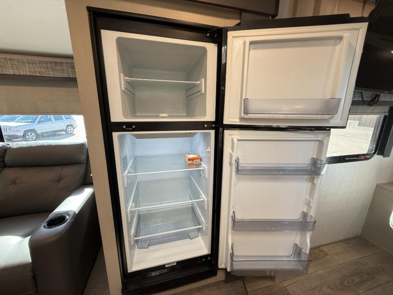 Get started today on your next camping trip in this Salem Hemisphere Hyper-Lyte travel trailer that will comfortably sleep two. You'll sleep well in the private bedroom that includes an queen bed with Versa-Tilt and two wardrobes for your things. Enjoy your meals seated at the theater seating with cup holders and a removable table for breakfast time. The kitchen has everything you need to prepare a meal; a three-burner range, a microwave, and plenty of counter space to prep meals. Once you've spent your day at the lake or hiking through the woods, come back to this trailer and clean up in the full rear bath before heading back outside to enjoy sitting under the 18' awning!