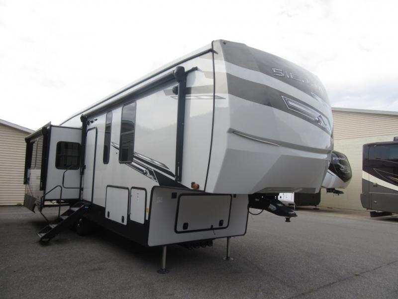 Each one of these Forest River Sierra fifth wheels are equipped with everything you need to make the most of each adventure! The underbelly armor will protect your unit's vitals from road debris and the painted two tone aerodynamic fiberglass front cap has an improved turning radius to make them easier to navigate. With an electric leveling system, you can set your unit up quick and easy then get to having fun faster than ever. The welded aluminum framed, vacuum bonded laminated superstructure will hold up through every adventure and the cambered powder coated frame comes with rust prohibitor to last longer. Each model also includes the Summit Package that comes with a king Wi-Fi extender system and Olympus antenna, a full coach water filter system, Goodyear tires with 7,000 lb. axles, and the list goes on. The interior is just as impressive with rustic wood plank linoleum, recessed residential lighting, a memory foam mattress, and mocha accent crown molding over the kitchen cabinets!