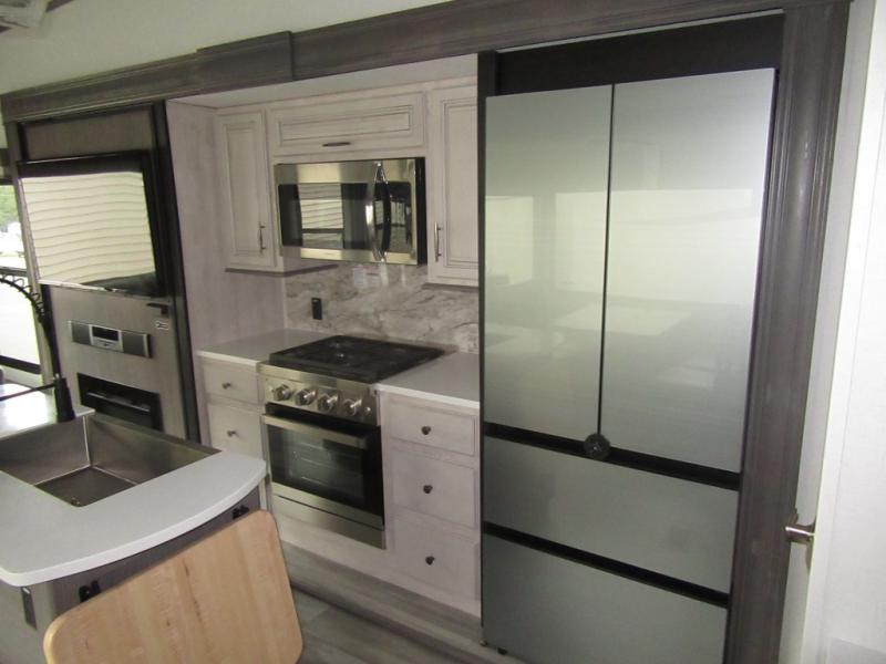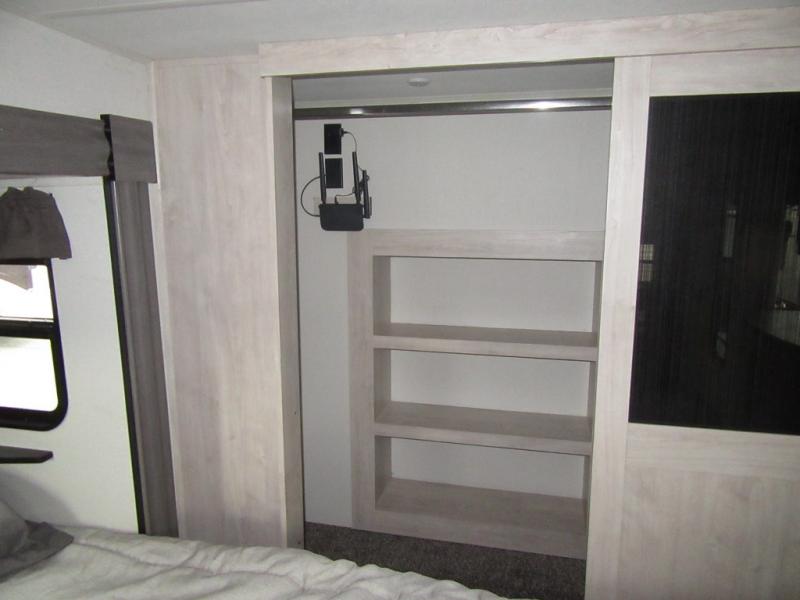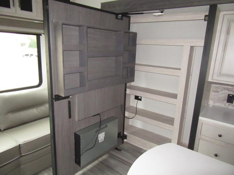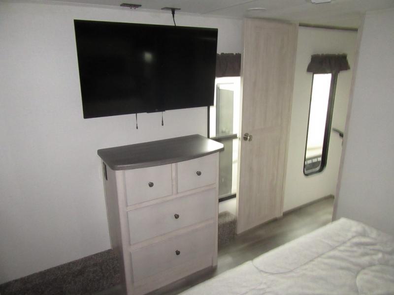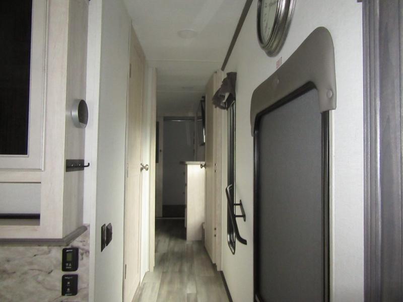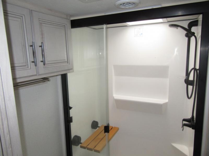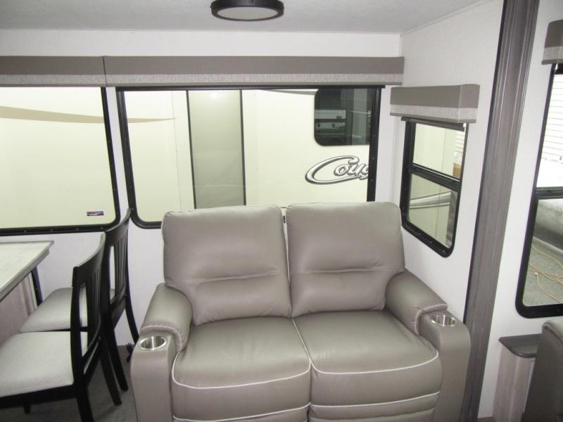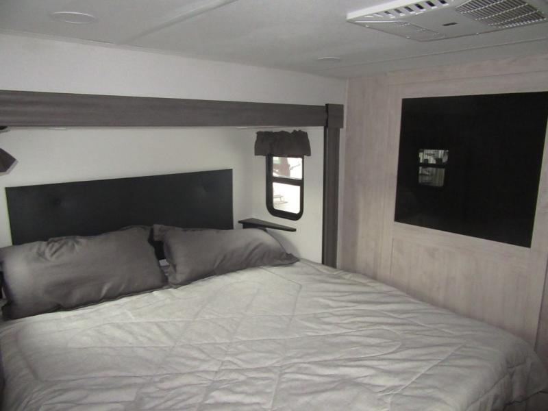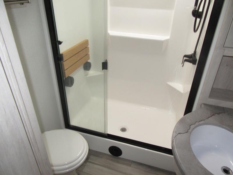 You will enjoy every adventure in this Sierra fifth wheel that is perfect for a couple that enjoys weekend or long term camping. This Sierra features triple slides for added space, a large kitchen island, plus a free standing dinette in the kitchen area which makes it feel a lot like home. When outside, you can enjoy being seated under the two power awnings with an LED light strip which is great for evening entertaining or relaxing. When it's time to get cleaned up and ready for bed, you will appreciate the spacious bath with a shower with a seat, a linen cabinet, and vanity/sink with a medicine cabinet as well. A front private bedroom with king bed slide will provide you with a great night's rest, and the large wardrobe has shelves for all your things. This model even has washer/dryer prep that will allow you to add a washer and dryer to make full-time easier than ever!
