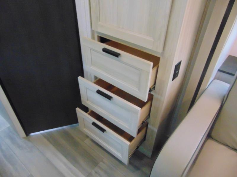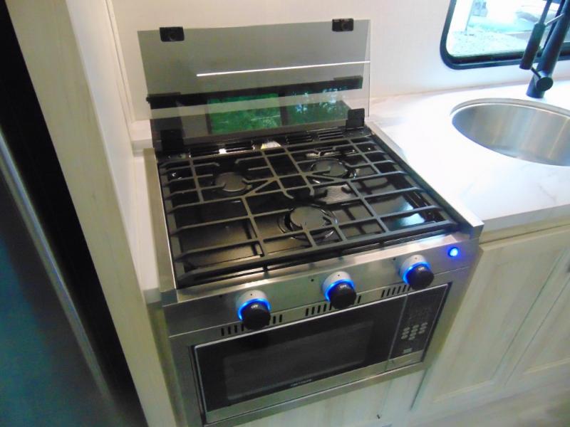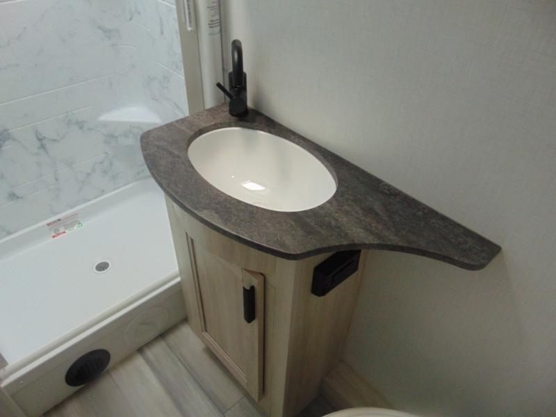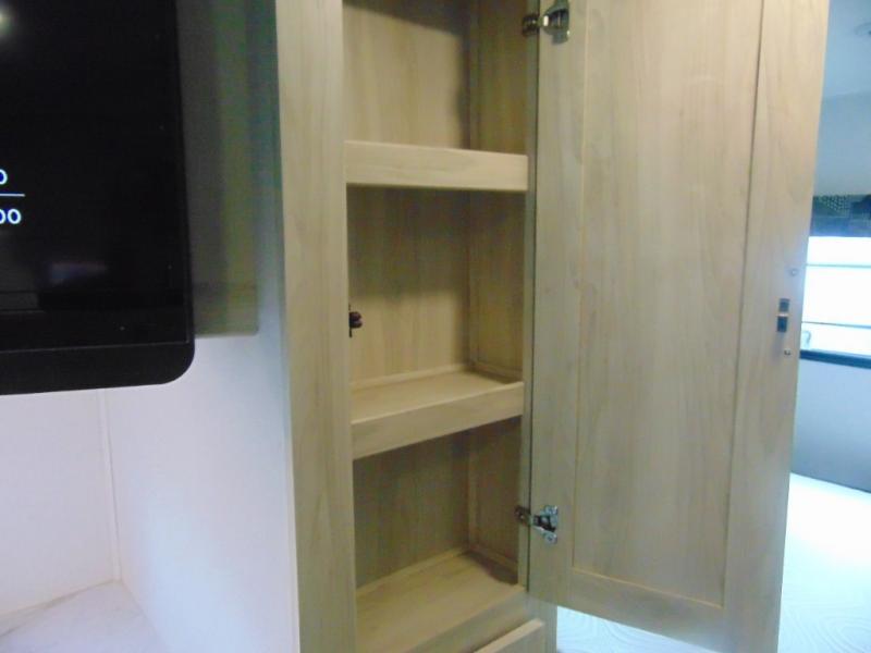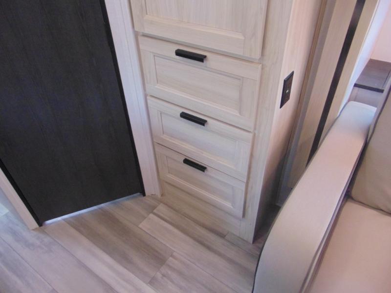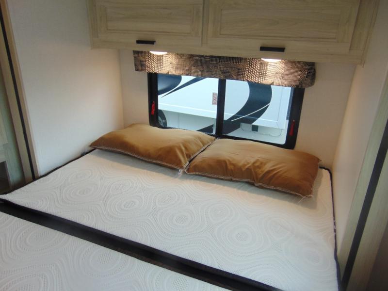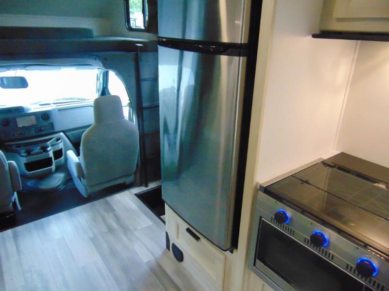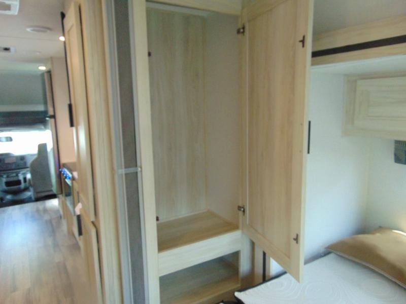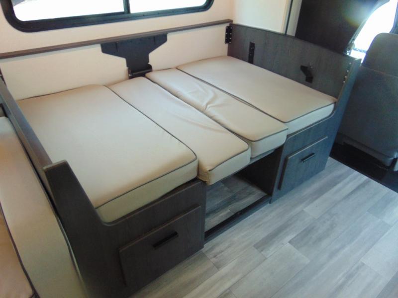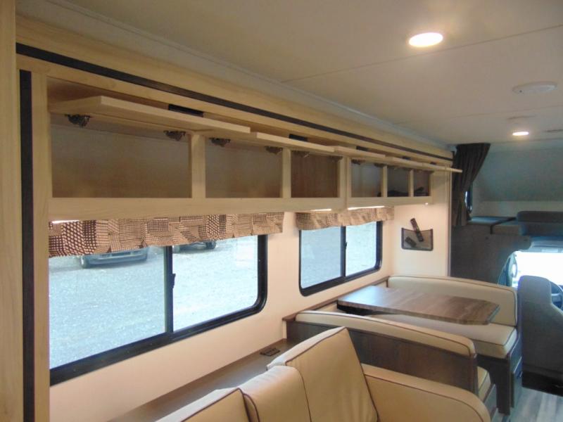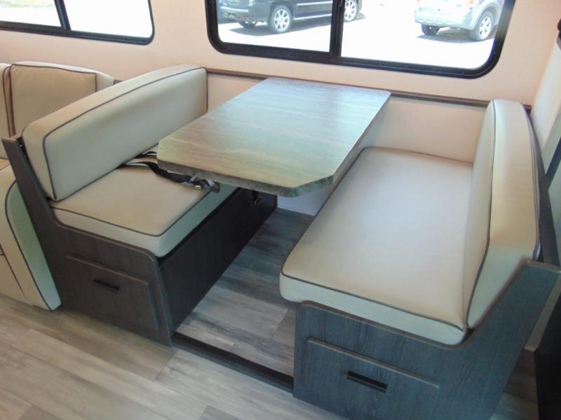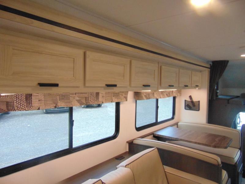 Don't make the mistake of passing up this Sunseeker LE Class C gas motorhome! There is a full bathroom with a shower skylight, oxygen-infused shower head with flexible extension, and an electric roof fan, and the bathroom is right next to the bedroom for convenience. The pantry, linen closet, wardrobe, and overhead storage offer you places to tuck away your belongings, and there are also two large storage drawers in the booth dinette as well. While you're resting on the sofa, you can watch the 12V LED TV, or you can chat with the chef who is preparing dinner on the recessed three-burner range or in the convection microwave.