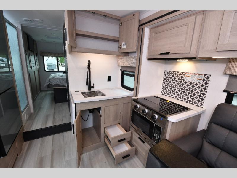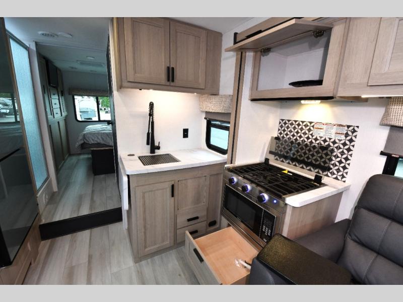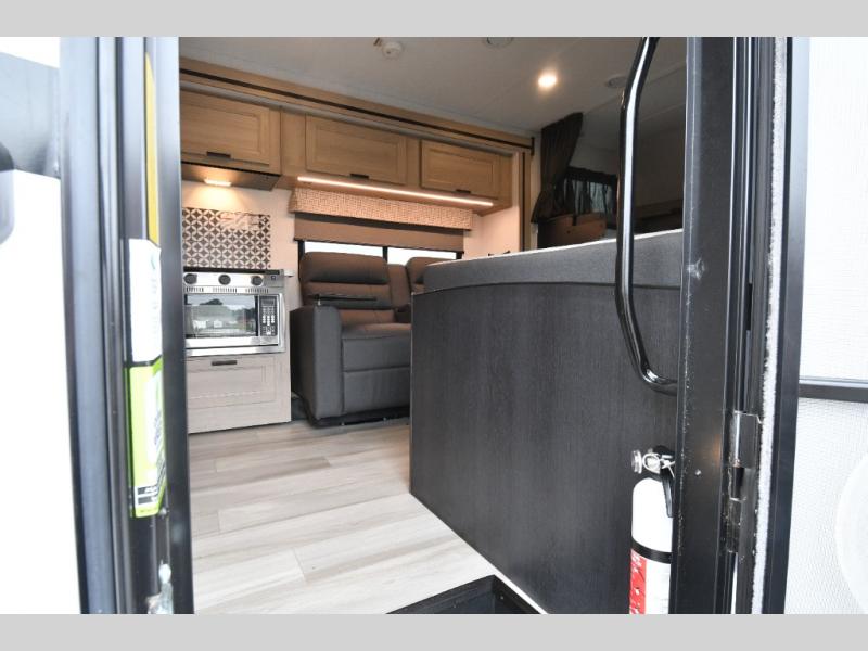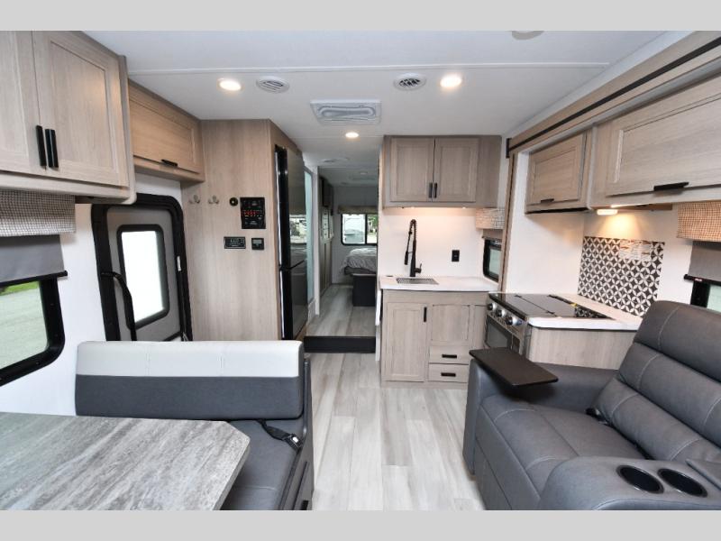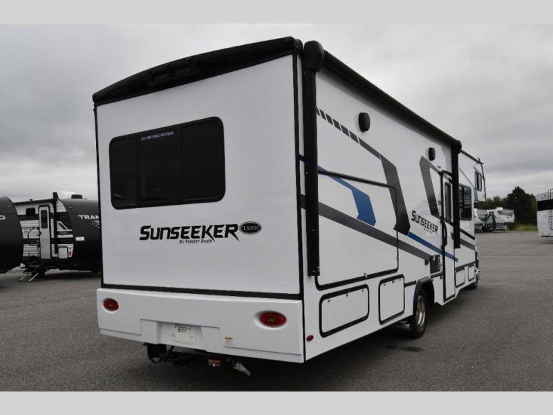 Outdoor living is effortless with an electric awning with LED lighting, outdoor kitchen, and large exterior storage compartments—perfect for cookouts, tailgating, or relaxing under the stars. Built for smooth travel, the Sunseeker Classic 2860DS includes rear and side-view cameras, lane detection, automatic leveling jacks, keyless entry, solar prep, and dual batteries to give you confidence on every adventure.
