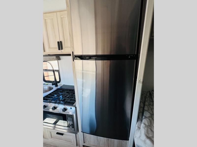 Take your family on great adventures in this Sunseeker LE Class C gas motorhome! This coach has a full kitchen equipped with a flip-up countertop, 1.3-cubic foot convection microwave, recessed three-burner range, soft-touch self-closing drawer guides, and a 10.7-cubic foot 12V refrigerator. Across from the kitchen is a U-shaped dinette that also has four seatbelts for traveling, and there are two large storage drawers in the dinette. The bathroom has an electric roof fan, an oxygen-infused shower head with flexible extension, and a shower skylight for more natural light in the morning. There is also a 12V LED TV for entertainment at night out in the main living area.