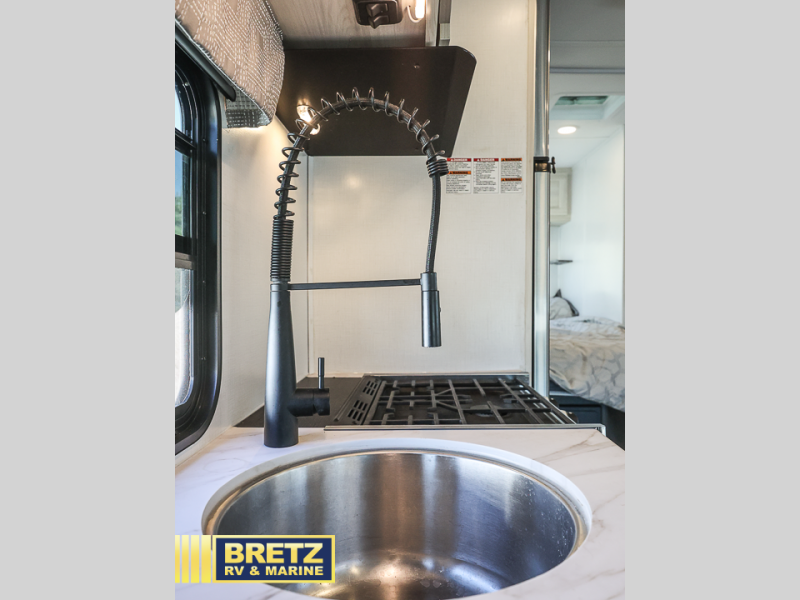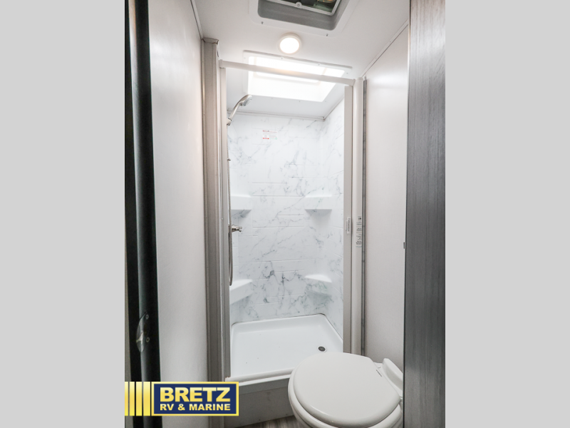 Take your family on great adventures in this Sunseeker LE Class C gas motorhome! This coach has a full kitchen equipped with a flip-up countertop, 1.3-cubic foot convection microwave, recessed three-burner range, soft-touch self-closing drawer guides, and a 10.7-cubic foot 12V refrigerator. Across from the kitchen is a U-shaped dinette that also has four seatbelts for traveling, and there are two large storage drawers in the dinette. The bathroom has an electric roof fan, an oxygen-infused shower head with flexible extension, and a shower skylight for more natural light in the morning. There is also a 12V LED TV for entertainment at night out in the main living area.