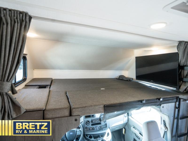 Take your family on great adventures in this Sunseeker LE Class C gas motorhome! This coach has a full kitchen equipped with a flip-up countertop, 1.3-cubic foot convection microwave, recessed three-burner range, soft-touch self-closing drawer guides, and a 10.7-cubic foot 12V refrigerator. Across from the kitchen is a U-shaped dinette that also has four seatbelts for traveling, and there are two large storage drawers in the dinette. The bathroom has an electric roof fan, an oxygen-infused shower head with flexible extension, and a shower skylight for more natural light in the morning. There is also a 12V LED TV for entertainment at night out in the main living area.