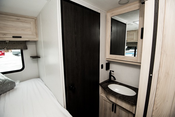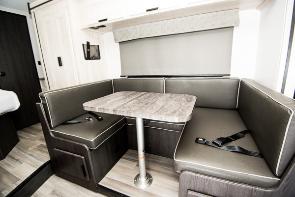 Take your family on great adventures in this Sunseeker LE Class C gas motorhome! This coach has a full kitchen equipped with a flip-up countertop, 1.3-cubic foot convection microwave, recessed three-burner range, soft-touch self-closing drawer guides, and a 10.7-cubic foot 12V refrigerator. Across from the kitchen is a U-shaped dinette that also has four seatbelts for traveling, and there are two large storage drawers in the dinette. The bathroom has an electric roof fan, an oxygen-infused shower head with flexible extension, and a shower skylight for more natural light in the morning. There is also a 12V LED TV for entertainment at night out in the main living area.