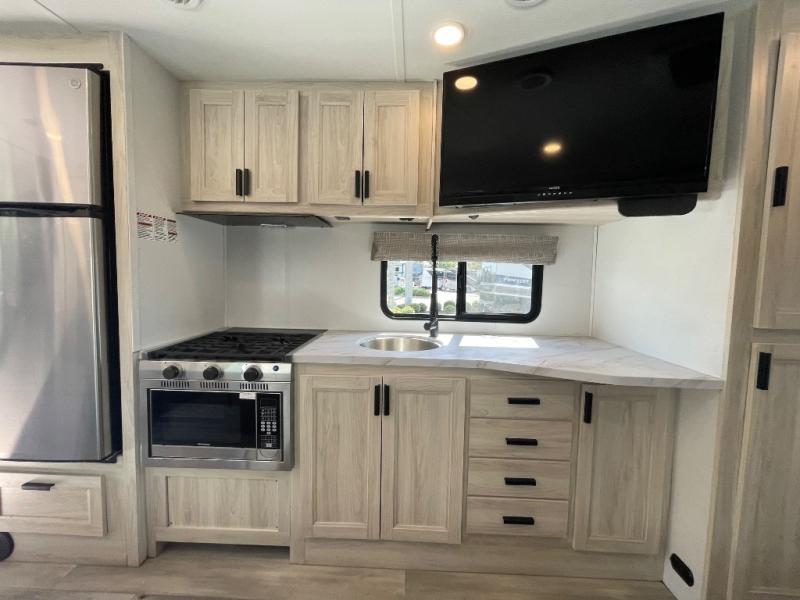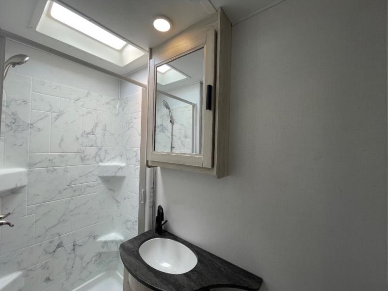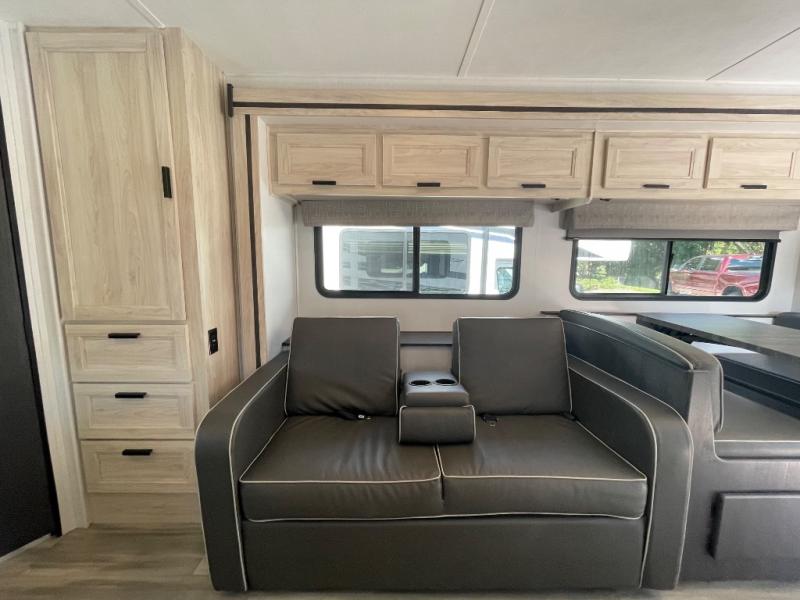 Don't make the mistake of passing up this Sunseeker LE Class C gas motorhome! There is a full bathroom with a shower skylight, oxygen-infused shower head with flexible extension, and an electric roof fan, and the bathroom is right next to the bedroom for convenience. The pantry, linen closet, wardrobe, and overhead storage offer you places to tuck away your belongings, and there are also two large storage drawers in the booth dinette as well. While you're resting on the sofa, you can watch the 12V LED TV, or you can chat with the chef who is preparing dinner on the recessed three-burner range or in the convection microwave.