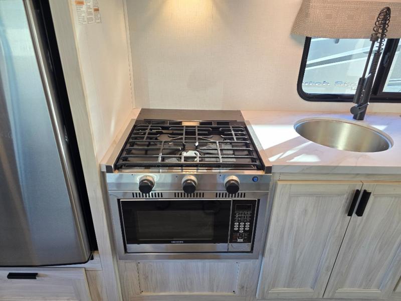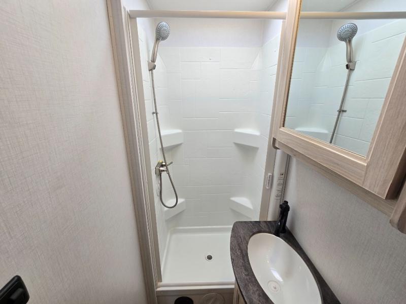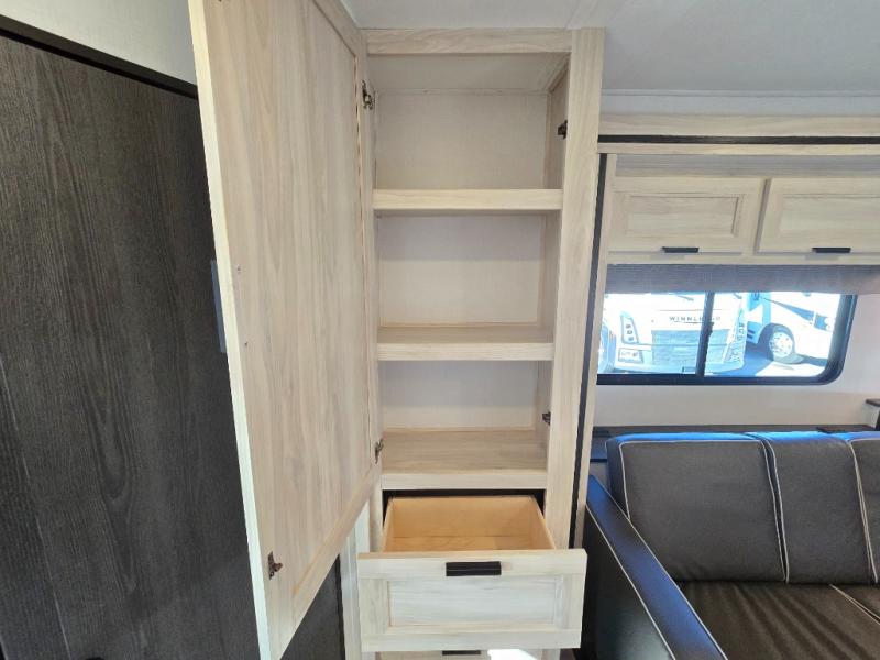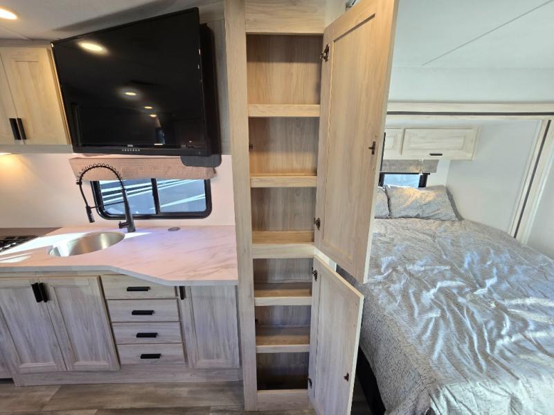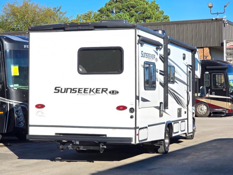 Don't make the mistake of passing up this Sunseeker LE Class C gas motorhome! There is a full bathroom with a shower skylight, oxygen-infused shower head with flexible extension, and an electric roof fan, and the bathroom is right next to the bedroom for convenience. The pantry, linen closet, wardrobe, and overhead storage offer you places to tuck away your belongings, and there are also two large storage drawers in the booth dinette as well. While you're resting on the sofa, you can watch the 12V LED TV, or you can chat with the chef who is preparing dinner on the recessed three-burner range or in the convection microwave.