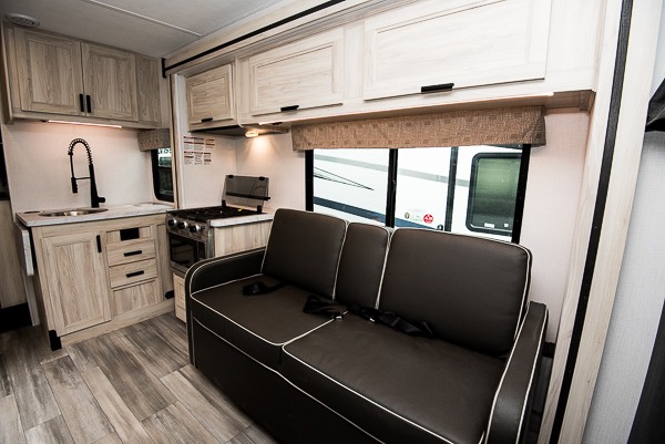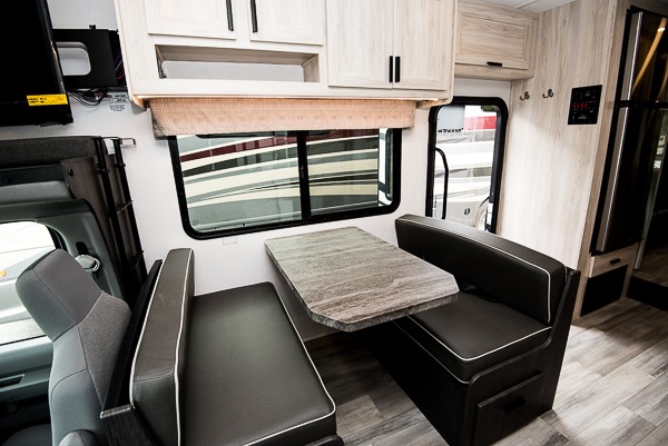 Each Forest River Sunseeker LE Class C gas motorhome comes with the LE Premier Package for your benefit! This package includes great features like backup/sideview cameras with rearview mirror monitor, a fiberglass front cap, an in-dash premium sound system with Bluetooth, a Winegard Air 360+ antenna with preparation for Gateway 4G Wi-Fi, toppers for the slide outs, and a 15,000 BTU ceiling-ducted, ultra-quiet roof air with heat pump. All of these premium features rest on a Superlite composite substrate, 2"-thick gel-coat sidewalls with lightweight composite waterproof material, block-foam insulation, and a fiberglass roof. There is a satellite/cable connection, a 30,000 BTU furnace, a Maxx Air multi-speed power fan, and black-out roller shades.