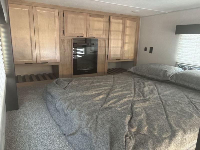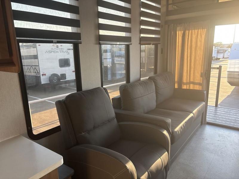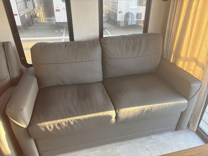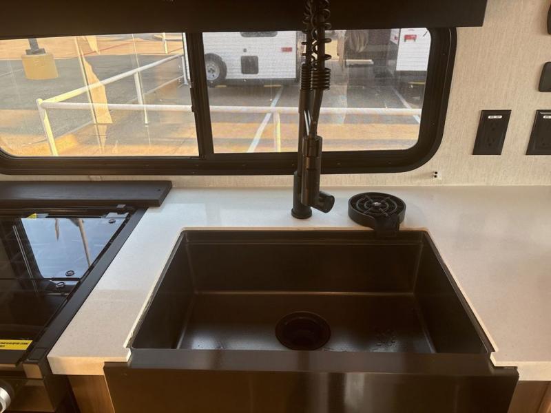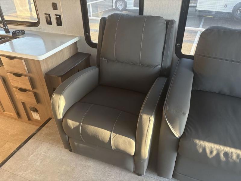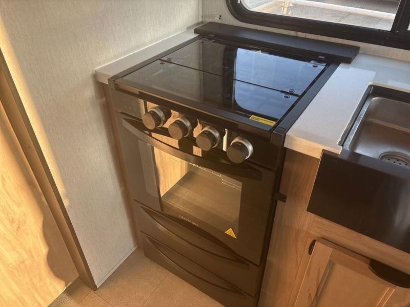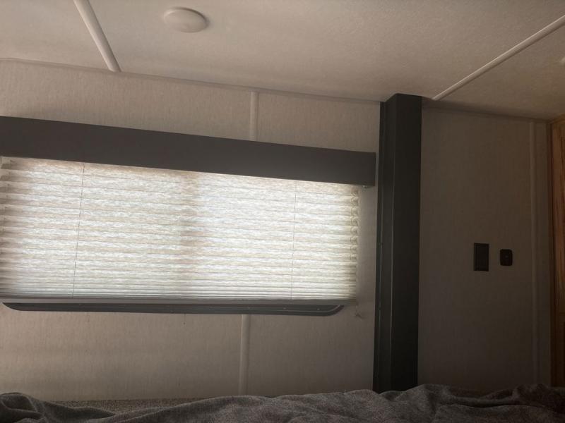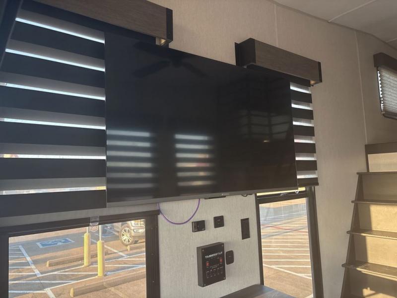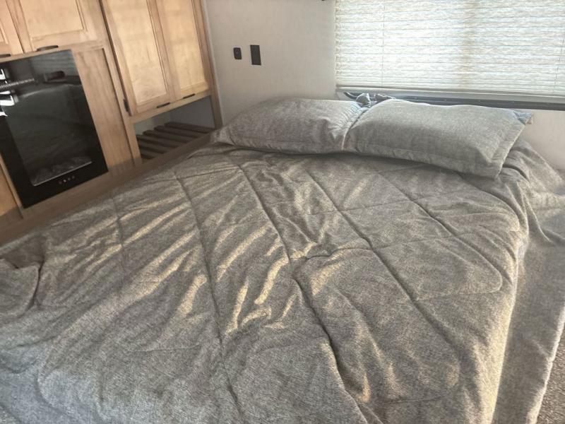 Enjoy comforts of home wherever you decide to roam in a Timberwolf destination trailer by Forest River. The seamless roofing membrane with heat reflectivity and power gear frame technology provide a durable foundation to your RV. You will also appreciate the exclusive solar thermo controlled reflective tinted safety glass windows, tire pressure monitors, and an on-demand tankless water heater to make extended stays easier than ever. Inside, the night shades will provide your crew with privacy, while the LED lights illuminate your space. There are also light filtering sheer shading premium zebra blinds, along with a premium bedding ensemble and comforter, USB charging stations, a supersized central A/C unit, and many more comforts!