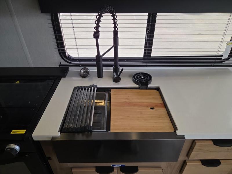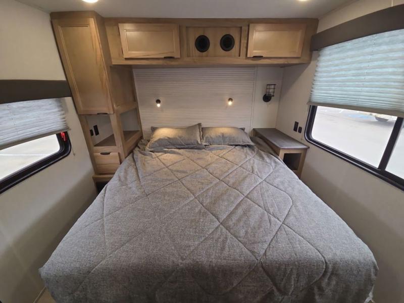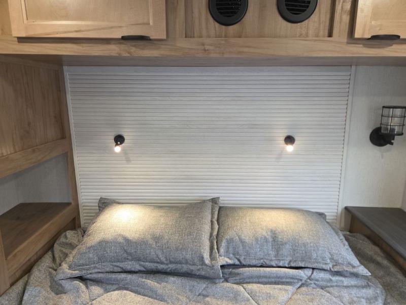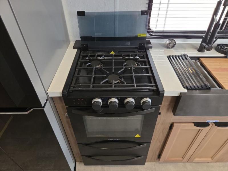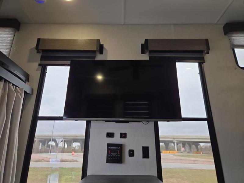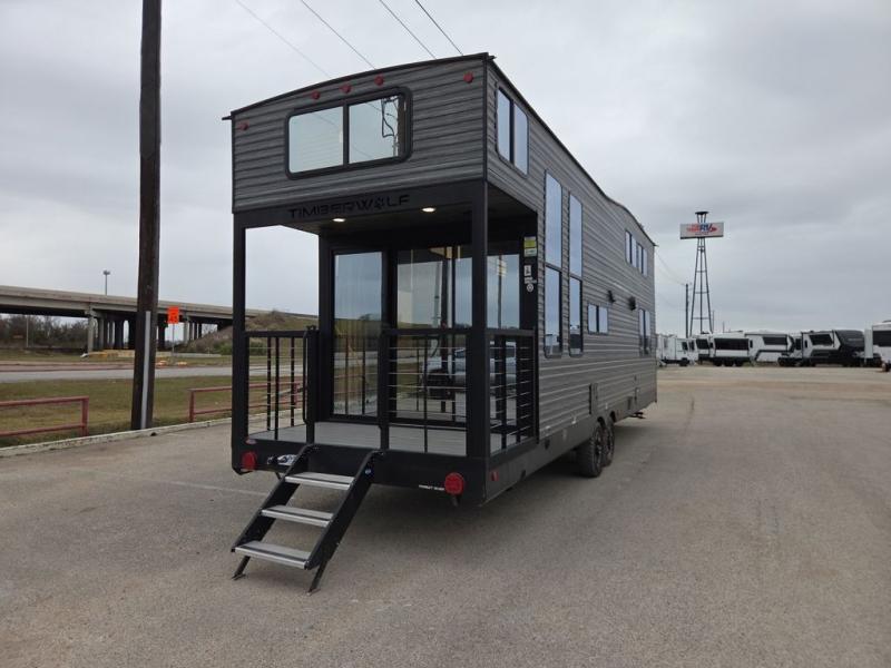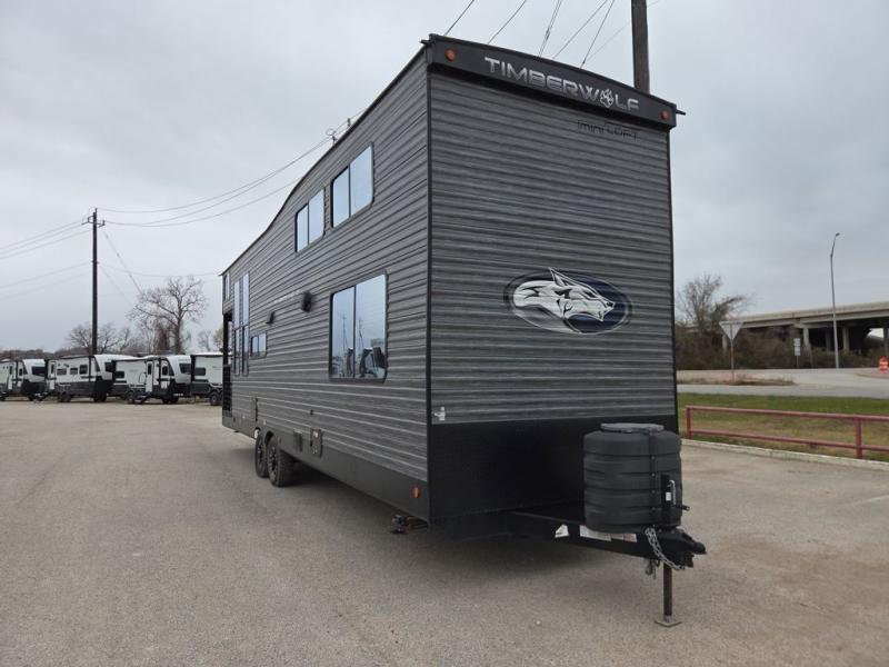 Enjoy comforts of home wherever you decide to roam in a Timberwolf destination trailer by Forest River. The seamless roofing membrane with heat reflectivity and power gear frame technology provide a durable foundation to your RV. You will also appreciate the exclusive solar thermo controlled reflective tinted safety glass windows, tire pressure monitors, and an on-demand tankless water heater to make extended stays easier than ever. Inside, the night shades will provide your crew with privacy, while the LED lights illuminate your space. There are also light filtering sheer shading premium zebra blinds, along with a premium bedding ensemble and comforter, USB charging stations, a supersized central A/C unit, and many more comforts!
