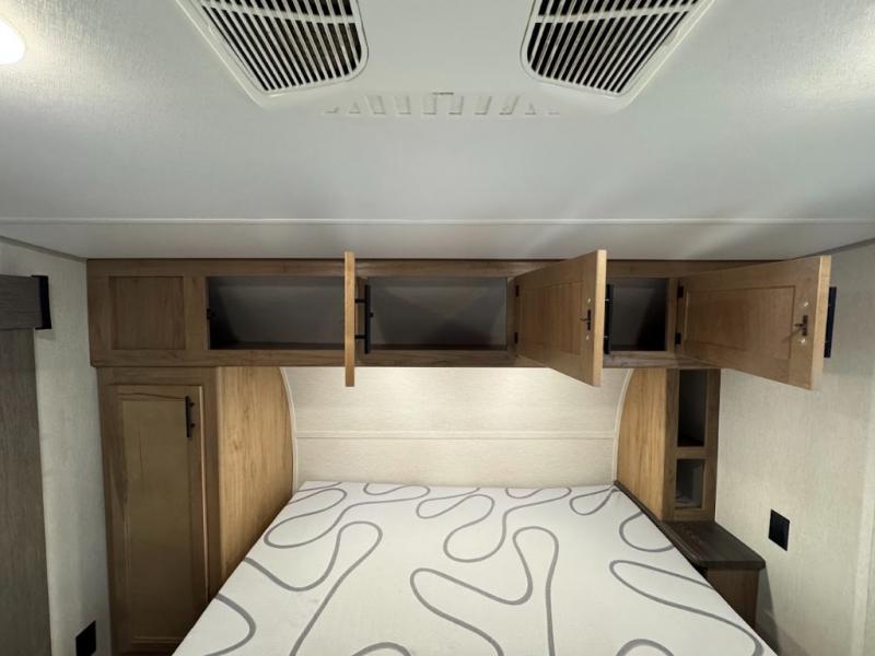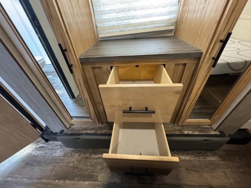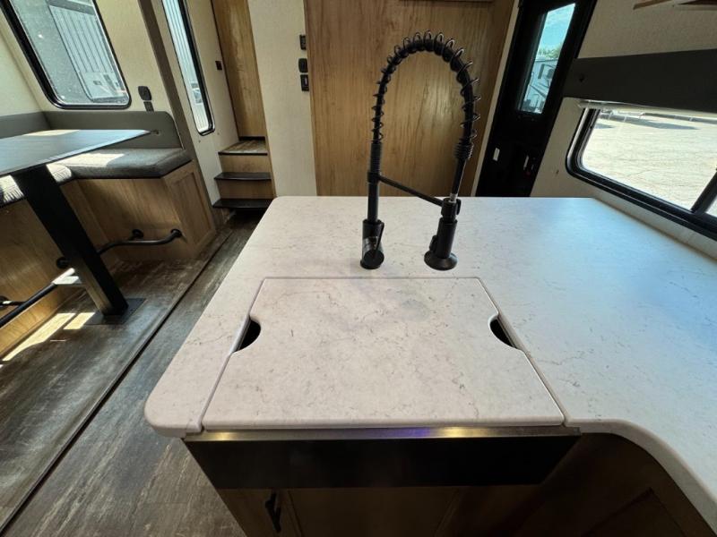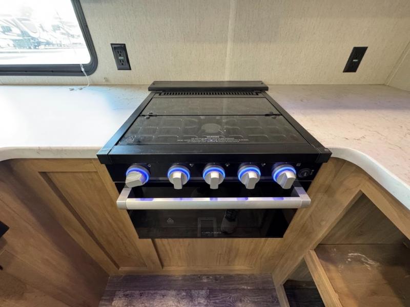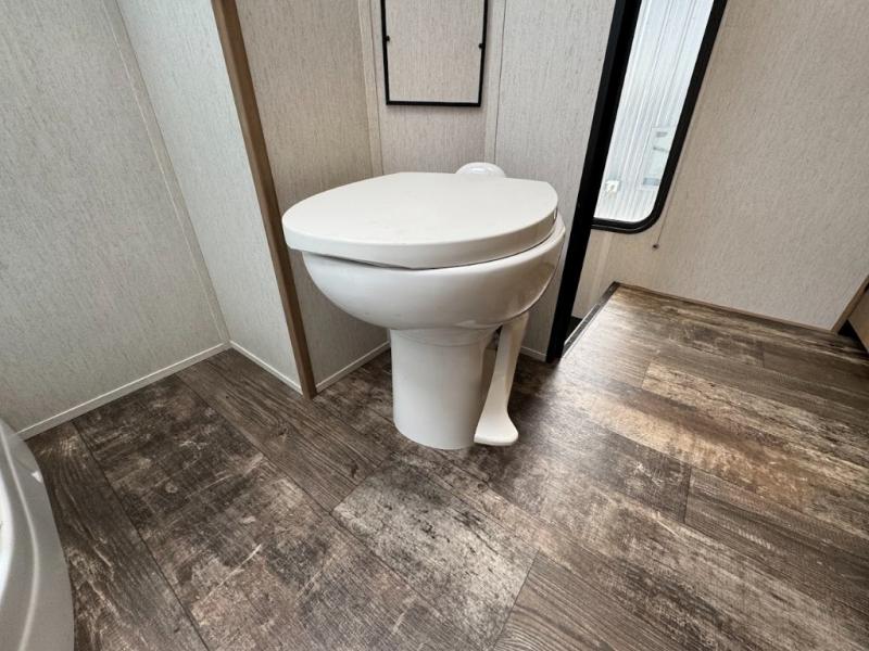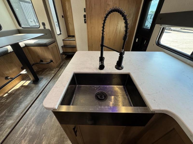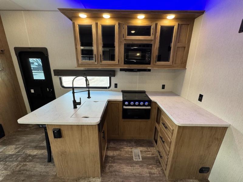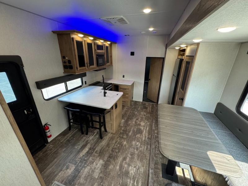 With any Vengeance Rouge SUT toy hauler travel trailer or fifth wheel by Forest River you can bring along your favorite ride-on toys, while still enjoying at-home comforts. Each one is built with a seamless roofing membrane with heat reflectivity and an armored underbelly tank enclosure for added strength and durability, and the 8' 6" wide body construction means you can bring along your favorite ride-on toys. Inside, you'll find a 1000 watt microwave and a three burner cooktop with an oven, seamless countertops, plus zebra shades that filters light and are blackout capable. These toy haulers also include 12V heat pads on all the holding tanks, a 15,000 BTU A/C unit, and many more amenities to make camping easier than ever.
