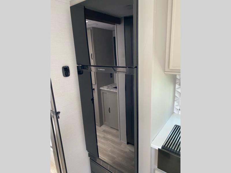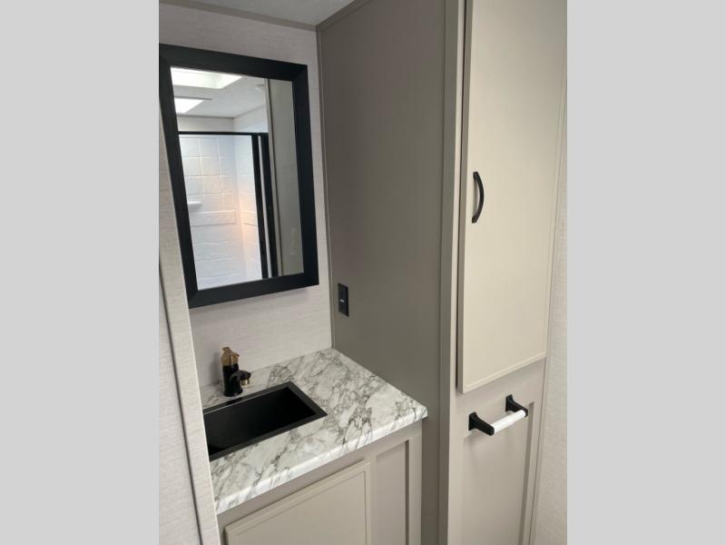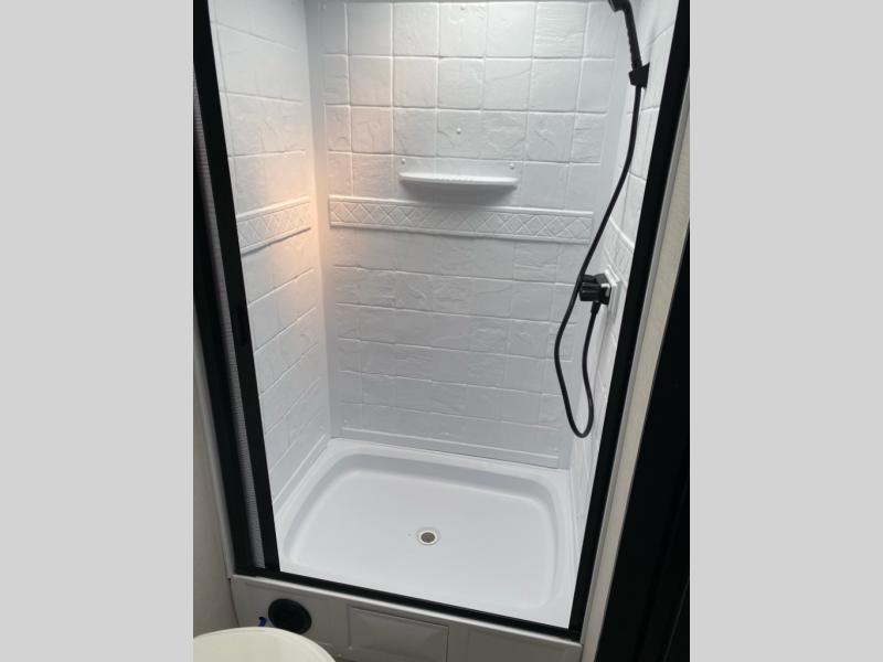 Each Vibe travel trailer by Forest River includes Hyper Lyte construction and a durable laminated "Aluma Frame" for years of use. You will also find an outside shower, a 200-watt roof mounted solar panel, and heated tank pads that will help extend your camping season. The Reserve Package has many at-home features you are sure to enjoy, like the decorative window treatments, solid surface countertops, new black chef's appliance package with an air fryer, and more! These models also include cable and satellite prep and a digital TV antenna with a booster so you can stay connected to the outside world if you choose. Make the easy choice and choose a Vibe travel trailer today!