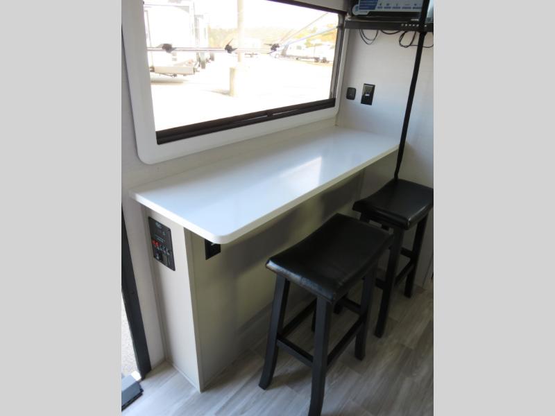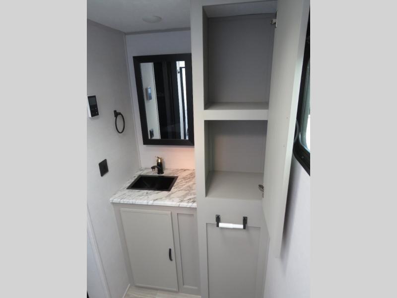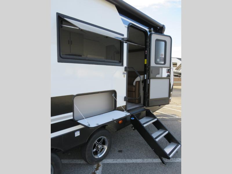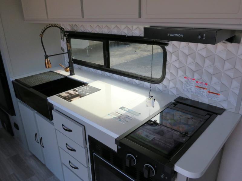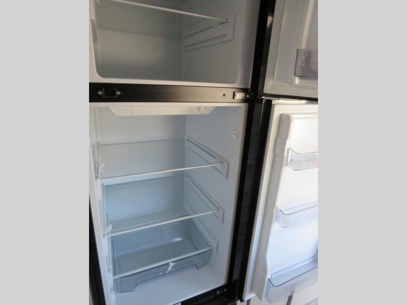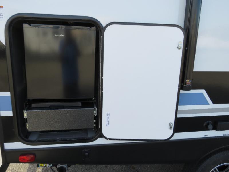 You will love camping every other weekend in this spacious travel trailer for three to four. There is a full rear bath with a spacious shower and medicine cabinet for your toiletries. You can relax on the jackknife sofa during the day and at night transform it into a Murphy bed. Easily prepare your meals in the kitchen on the three burner cooktop or in the oven. There is also an upgraded 10.7 cu. ft. residential refrigerator, plus a convection microwave oven for meals on the go. The bar top with two stools is the perfect place to enjoy your meals as you have a flip-open window to let in some fresh air. This model also includes an outside kitchen with an induction cooktop, a 14' power awning, plus an outside spray port for convenience!