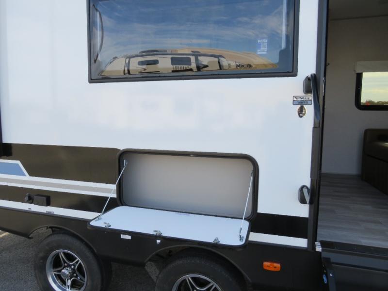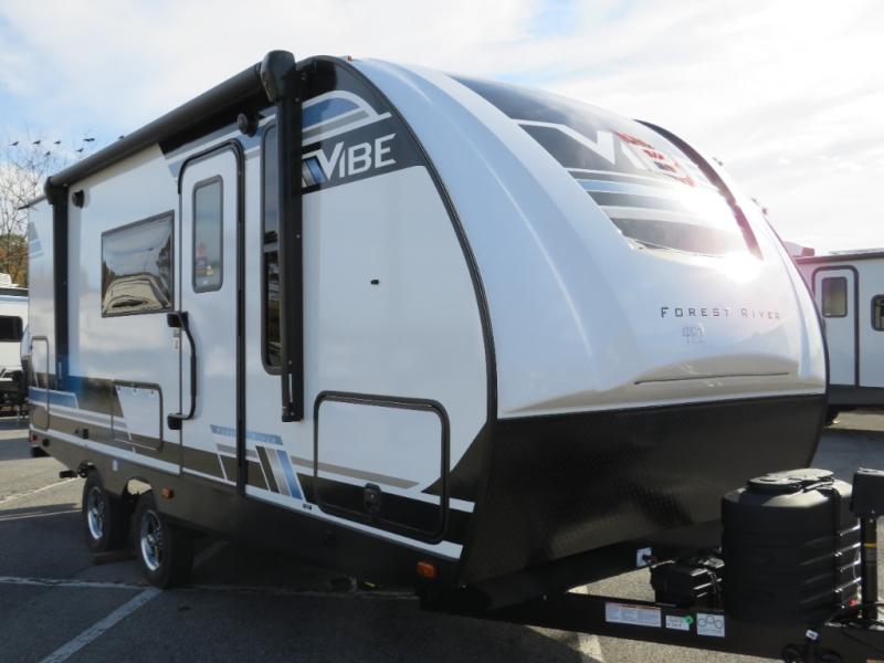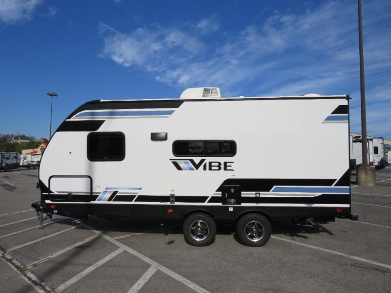Each Vibe travel trailer by Forest River includes Hyper Lyte construction and a durable laminated "Aluma Frame" for years of use. You will also find an outside shower, a 200-watt roof mounted solar panel, and heated tank pads that will help extend your camping season. The Reserve Package has many at-home features you are sure to enjoy, like the decorative window treatments, solid surface countertops, new black chef's appliance package with an air fryer, and more! These models also include cable and satellite prep and a digital TV antenna with a booster so you can stay connected to the outside world if you choose. Make the easy choice and choose a Vibe travel trailer today!