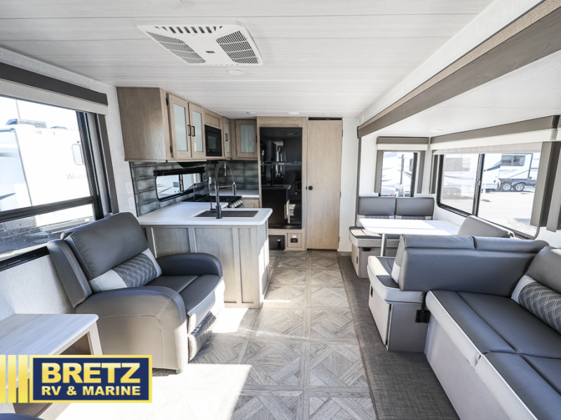 Enjoy years and years of memories with any one of these Forest River Wildwood travel trailers! They are built with a Dicor PVC roof membrane, a powder coated I-beam frame, and an aerodynamic front radius profile for an easier tow. The triple seal slide out system prevents water from seeping inside and keeps it outside where it belongs. The Best In Class Value Package includes upgraded designer furniture, seamless countertops with no T-mold, and two zone residential soundbars with FM, Bluetooth, HDMI and USB. You will also appreciate the heated and enclosed Accessi-Belly with removable underbelly panels, the power tongue jack with an LED light, and the designated CPAP storage. Some new upgraded features include: an upgraded slide-out fascia, a Versa-Tilt bed, an upgraded shower head, and a 60K BTU tankless water heater, and so much more!
