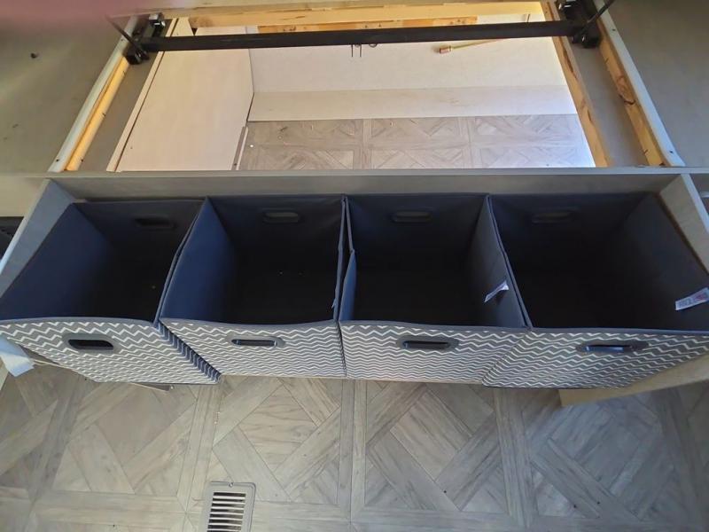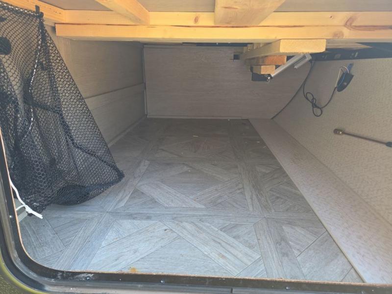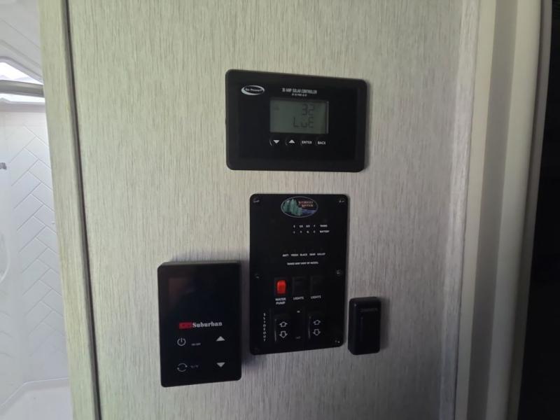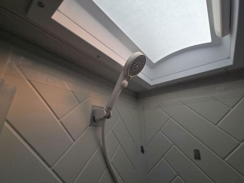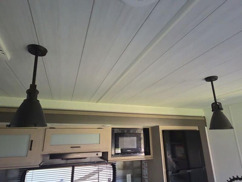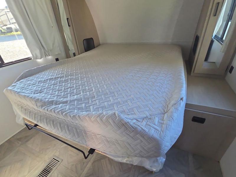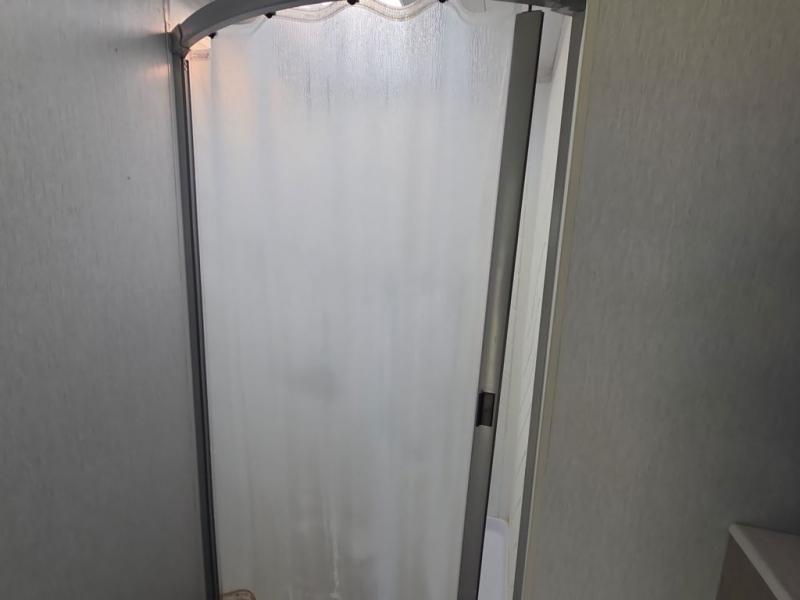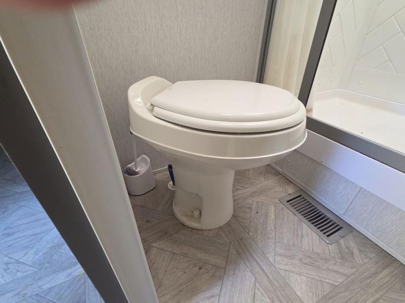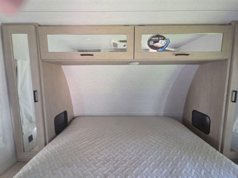The perfect couple's coach with a view! This Wildwood View features a 7' kitchen island and five bar stools for dining and prep space. The island also houses a double kitchen sink for easy clean-up. Thanks to the island, you will enjoy 15 linear feet of countertop space throughout. The view will be of your choosing thanks to 95.5 square feet of windows that will easily bring the outdoors inside. A sectional sofa across the back of the unit provides ample seating to relax and enjoy a good book or the entertainment center. Behind the entertainment center, you will find hidden storage space with shelves so everything can be tucked out of sight, and an oversized refrigerator will provide enough space for your perishables while you are on vacation as well. A full bath is conveniently located near the main entry featuring StepAbove entry steps leading inside. The bath provides a walk-in shower, vanity with sink, toilet, and linen storage. In the private front bedroom, a Versa-Tilt custom king bed will allow you a relaxing and comfortable night's rest, and once again, a great view out the dual opposing windows. On the outside, a 23' awning offers additional living space protected from the elements, and a spacious pass-through storage compartment will allow you to stow away your camp chairs and outdoor equipment and games easily for transport.