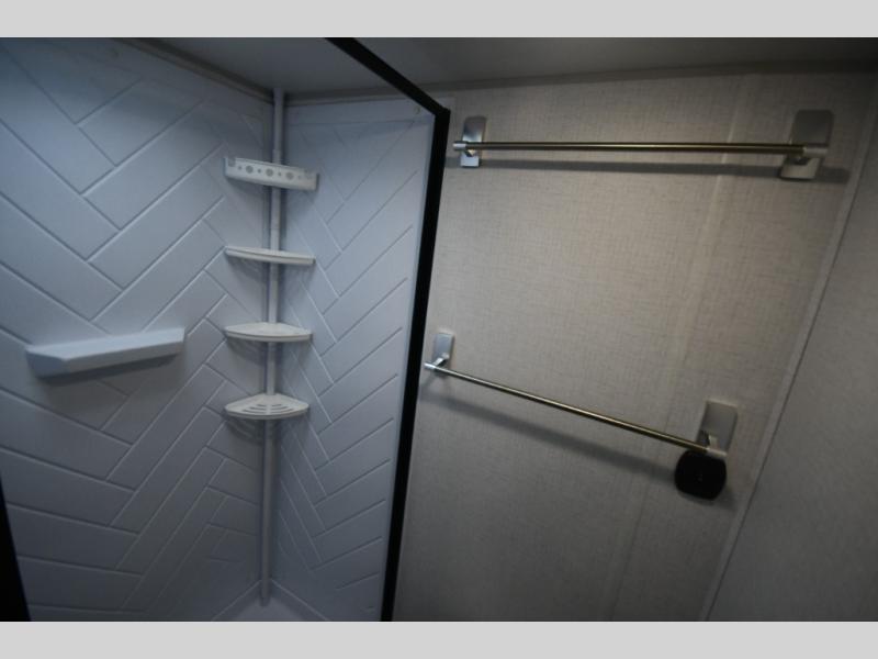 Bathroom Convenience: Compact yet functional bathroom with shower, perfect for family camping trips.