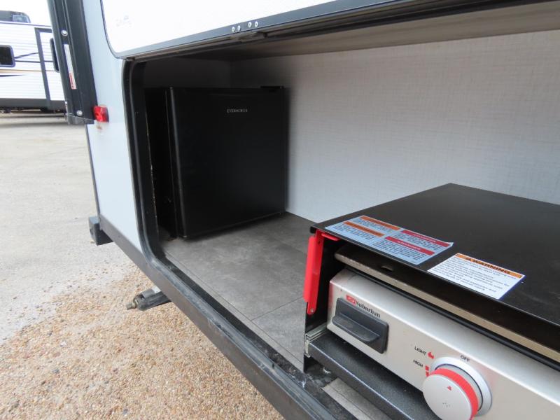 The Forest River Wildwood FSX travel trailer and toy haulers are easy to tow and easy to love, so come take a look! With each model you'll appreciate the 20K BTU furnace and 13,500 BTU A/C to keep you comfortable year around, and the large windows will make the whole unit seem bright and open. The EZ entrance includes an XL folding grab assist handle, and the power awning with LED lights provide an outdoor living space you are sure to love. The lightweight Wildwood FSX travel trailers and toy haulers are your ticket to the great outdoors. Choose yours today!