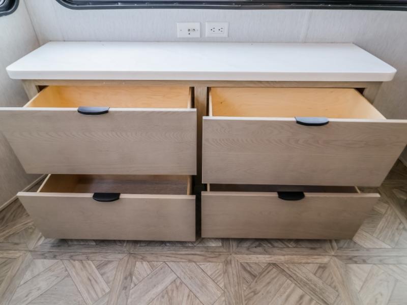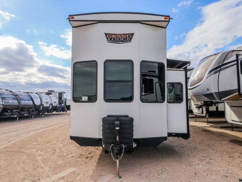 You will experience a home away from home with any one of these Forest River Wildwood Grand Lodge destination trailers! Their construction consists of a 12" forged I-beam frame, a cambered chassis, and plywood floor decking, as well as 5" bowed truss roof rafters, 3/8" roof decking, and color coded water lines to make life easier. The one-piece, seamless slides and 106" interior living room height makes for more walking around space. A Best in Class Value package includes upgraded designer furniture, a central vacuum with sweep attachment, and stainless steel kitchen appliances. Plus, it also features a heated and enclosed Accessi-Belly with removable panels and an exterior LED light strip under the awning. Come choose your favorite model today!