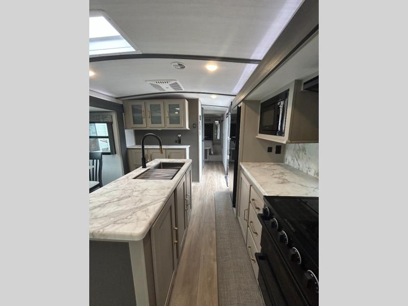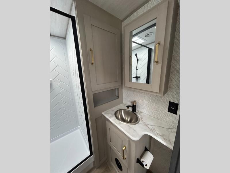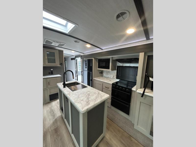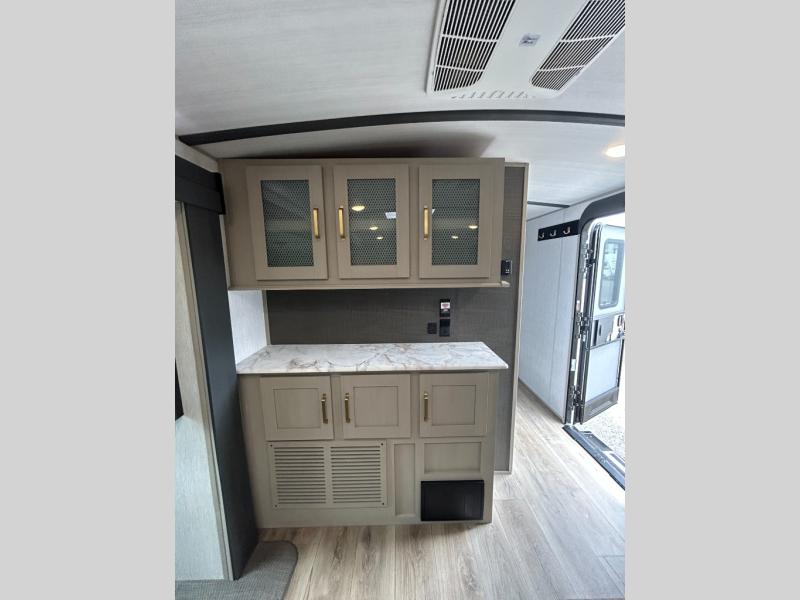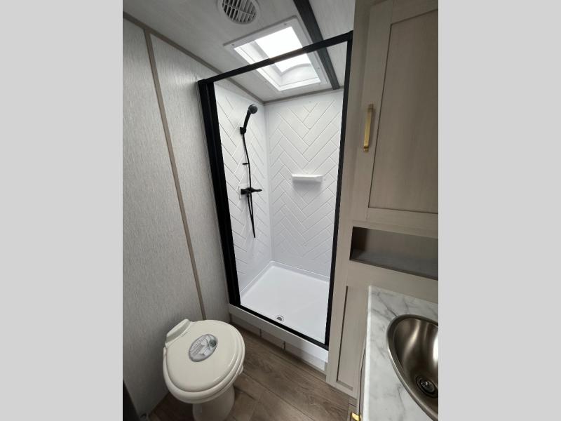 With any Wildwood Heritage Glen travel trailer by Forest River, the quality construction, attention to detail and design along with a bright and welcoming interior allows you to relax in comfort with conveniences while exploring outdoors. Each model includes a WeatherShield one piece fiberglass roof, Goodyear radial tires, and an enclosed underbelly with 12V tank heaters on all holding tanks for added protection. You will appreciate the on-demand tankless water heater, along with the 15K BTU Quite Cool A/C and 50 Amp service with a brace for a second A/C. There is an outside shower with hot and cold water, solar prep, a power stabilizer and tongue jack, plus many more exterior conveniences. Head inside to enjoy Nordic marble countertops throughout, yacht trim ceiling finishes, and full length barreled ceilings for additional head room.
