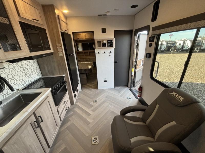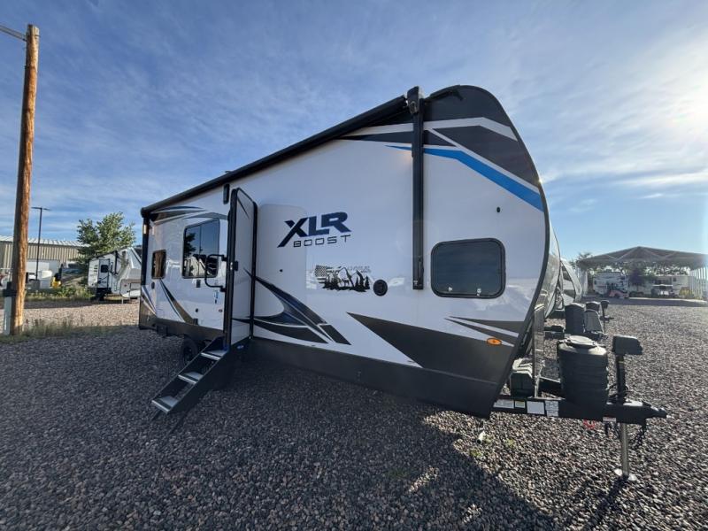 Boost into action camping with one of these Forest River XLR Boost fifth wheel toy haulers or travel trailer toy haulers! The 8' 6" wide body design not only provides ample interior space, but also packs in all of the luxurious features to make your trips great. There is Freon rigid urethane spray foam roof insulation and sidewall construction, along with fiberglass flooring insulation, and roof attic vents within the mandatory Climate Comfort Package so you can camp all year around. The Convenience Package is also mandatory, and includes a tankless water heater, back up camera prep, a 15K BTU main roof A/C, and more features to make each trip accommodating. You will love the decorative vinyl flooring and decorative kitchen backsplash included in the REV Package, as well as a residential style kitchen faucet, a large bath vent fan, and industrial garage flooring that will withstand your many adventures. A Renewable Energy Package includes a 200W roof mounted solar panel for off-grid capabilities, and there is an external fuel cell with a pump that will keep your toys ready to go!