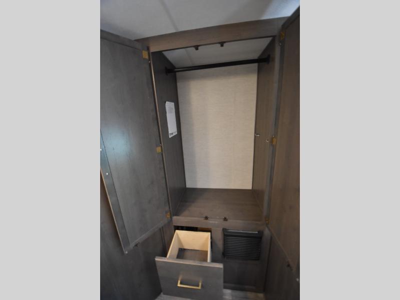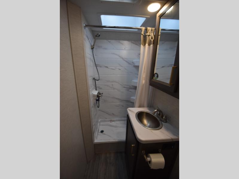 Get ready to travel for long periods of time in this coach that offers sleeping space for five when you utilize the rear corner queen bed, the cab over bunk and the dream dinette. You and your friends will enjoy staying anywhere with the views out of the windows, the full bathroom only a few steps away and the kitchen amenities to feed everyone plus some. The chef will love the galley kitchen and being able to watch the 39" Smart TV with swivel while cooking. You might even like to add an optional exterior 32" TV to enjoy while relaxing outside under the power awning with integrated LED lighting to enjoy at night.