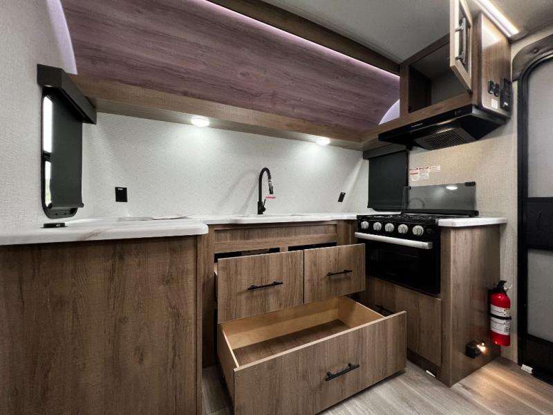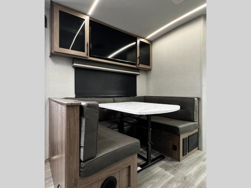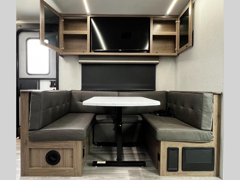 Just imagine leaving the world behind and secluding yourself away with your favorite people in your Grand Design Imagine travel trailer! The Imagine has been designed to enjoy extended season camping and includes a high-capacity furnace, a heated and enclosed underbelly with suspended tanks, a designated heat duct to the subfloor, and a high-density roof insulation with attic vent. You'll have maximum headroom with radius interior ceilings, and large panoramic windows to let in natural lighting. The exclusive drop-frame pass-through storage compartment is going to allow you to bring along lots of equipment, and the universal docking station is an all-in-one location for utilities and hook-ups. You'll also have industry-leading tank capacities so that you can fill and empty your tanks less often.