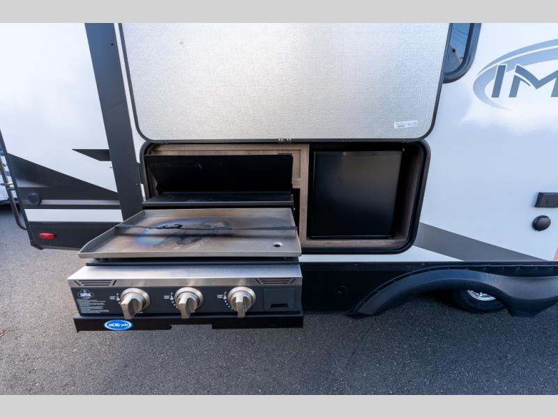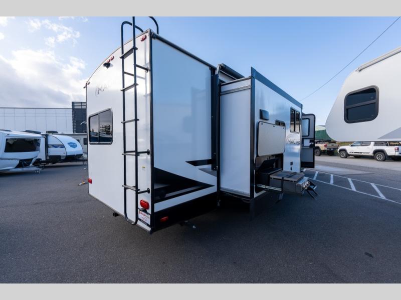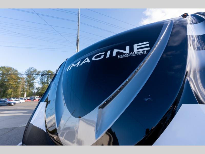 Just imagine leaving the world behind and secluding yourself away with your favorite people in your Grand Design Imagine travel trailer! The Imagine has been designed to enjoy extended season camping and includes a high-capacity furnace, a heated and enclosed underbelly with suspended tanks, a designated heat duct to the subfloor, and a high-density roof insulation with attic vent. You'll have maximum head room on the interior with 81" radius ceilings, and large panoramic windows to let in natural lighting. The exclusive drop-frame pass-through storage compartment is going to allow you to bring along lots of equipment, and the universal docking station is an all-in-one location for utilities and hook-ups. You'll also have industry-leading tank capacities so that you can fill and empty your tanks less often.