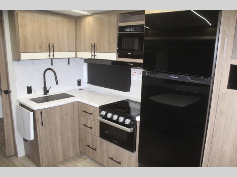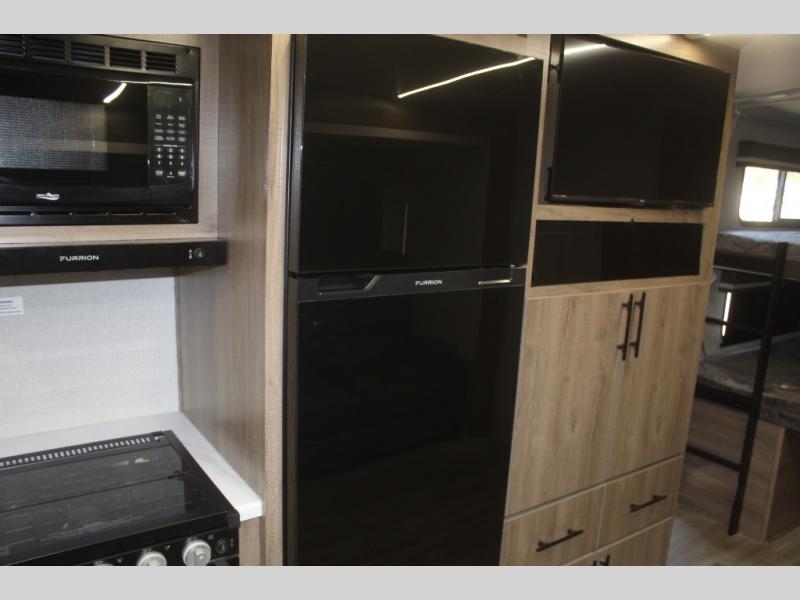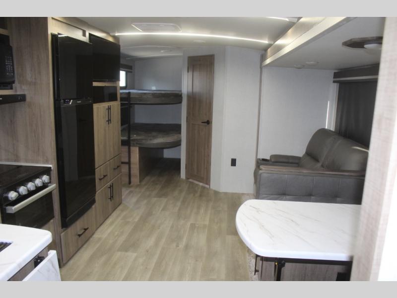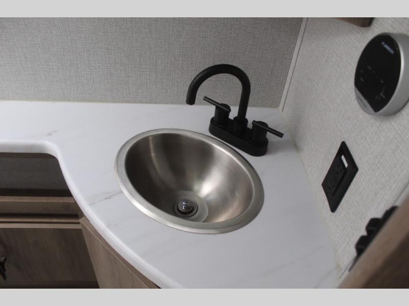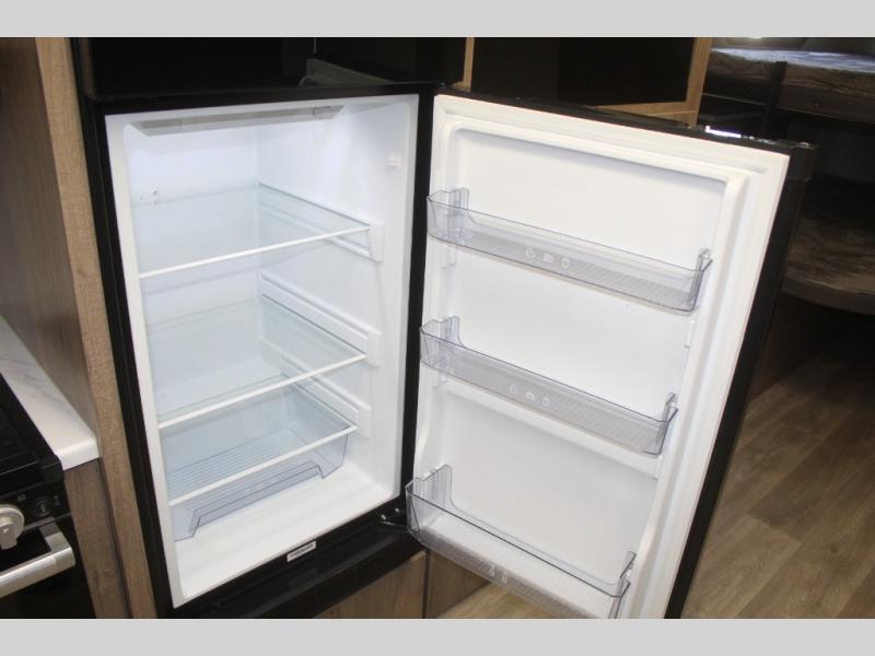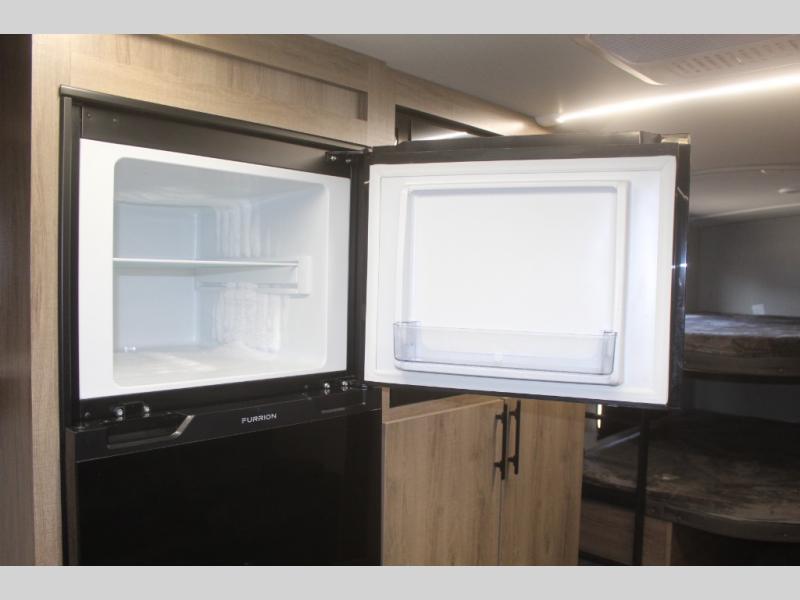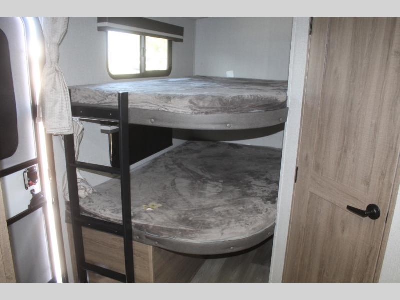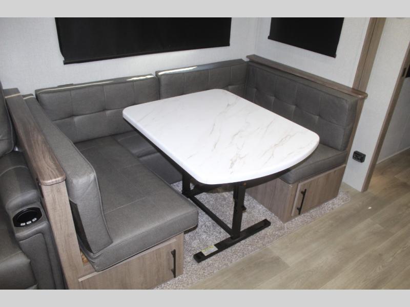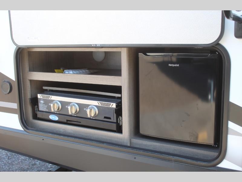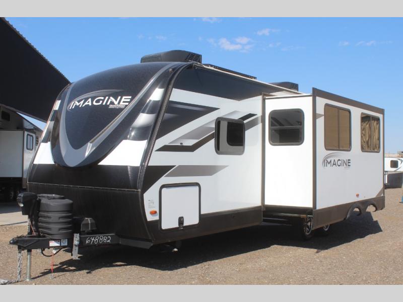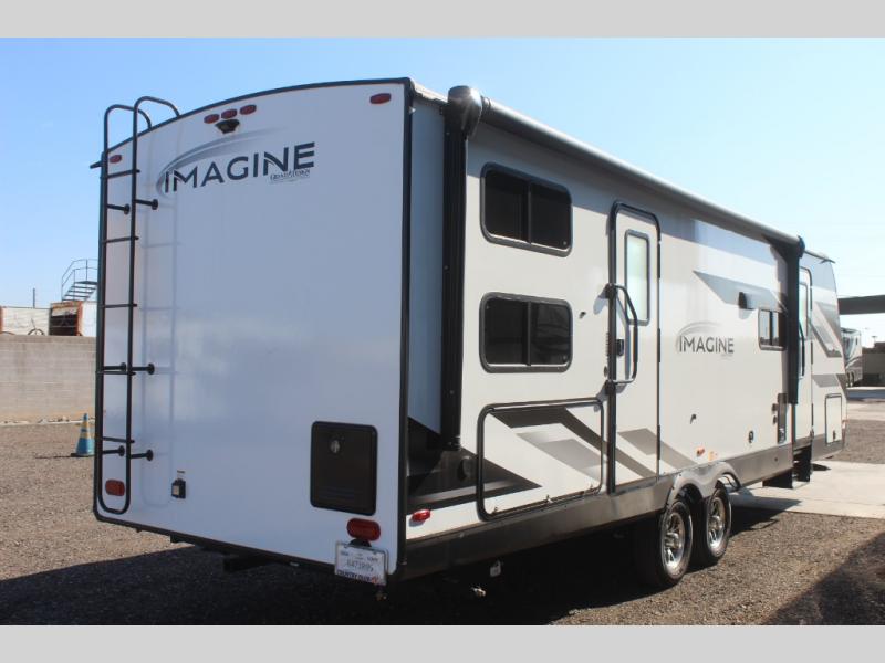 Where will you go with this Imagine travel trailer? The possibilities are endless! You can take your family on an exciting excursion because this trailer has enough sleeping space for everyone with a 60" x 80" queen bed in the private bedroom, a U-shaped dinette and tri-fold sofa in the main living area, and there is a set of 47" x 76" bunk beds with privacy curtains in the rear corner. You can come and go as you please with two entry doors, and the outdoor griddle and refrigerator will be fun to use when the weather is nice. The flip-up countertop extension will make it easier to prepare delicious home cooked meals and the shoe storage area helps to keep things neat and tidy.