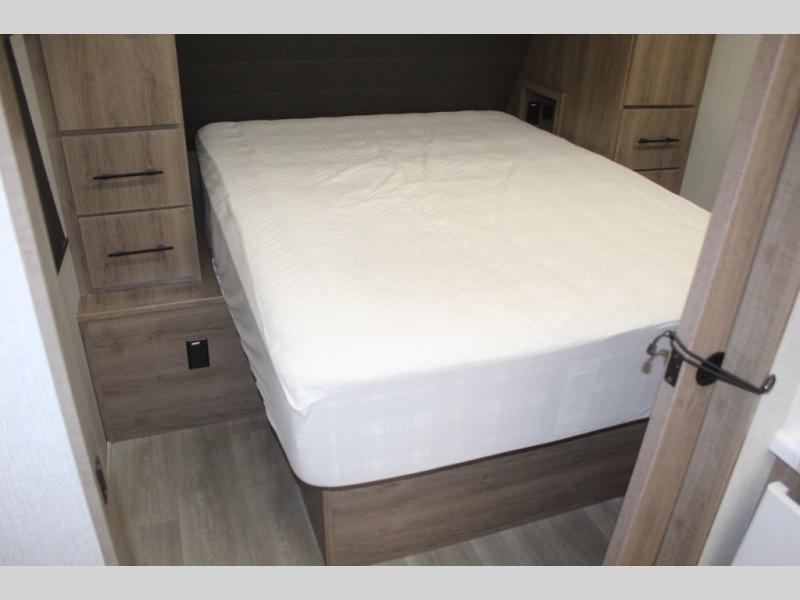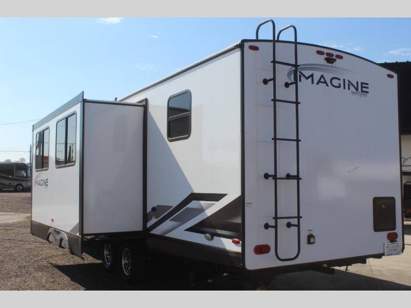 Just imagine leaving the world behind and secluding yourself away with your favorite people in your Grand Design Imagine travel trailer! The Imagine has been designed to enjoy extended season camping and includes a high-capacity furnace, a heated and enclosed underbelly with suspended tanks, a designated heat duct to the subfloor, and a high-density roof insulation with attic vent. You'll have maximum head room on the interior with 81" radius ceilings, and large panoramic windows to let in natural lighting. The exclusive drop-frame pass-through storage compartment is going to allow you to bring along lots of equipment, and the universal docking station is an all-in-one location for utilities and hook-ups. You'll also have industry-leading tank capacities so that you can fill and empty your tanks less often.