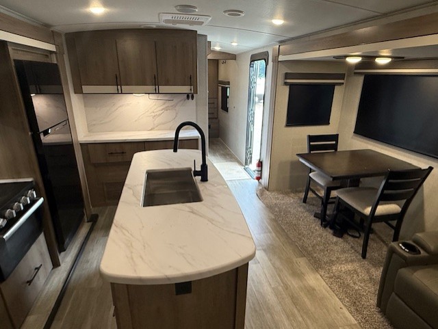 What I liked most: Rear living anywhere you look there is a great view out of the windows also dont have to twist my head around to see TV also no cabinet to hit my head on when brushing teeth.great warranty department easy to deal with just had small trim things that needed attention could of let them go but it was new.