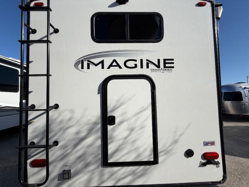 Just imagine leaving the world behind and secluding yourself away with your favorite people in your Grand Design Imagine travel trailer! The Imagine has been designed to enjoy extended season camping and includes a high-capacity furnace, a heated and enclosed underbelly with suspended tanks, a designated heat duct to the subfloor, and a high-density roof insulation with attic vent. You'll have maximum head room on the interior with 81" radius ceilings, and large panoramic windows to let in natural lighting. The exclusive drop-frame pass-through storage compartment is going to allow you to bring along lots of equipment, and the universal docking station is an all-in-one location for utilities and hook-ups. You'll also have industry-leading tank capacities so that you can fill and empty your tanks less often.