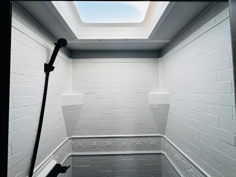 The Murphy bed is the eye-catching feature on this Imagine XLS travel trailer! Not only can it fold away in the morning to reveal a sofa for lounging, but it will also provide you with drawer storage under the sofa. Another functional feature is the theater dinette with a removable table in front or you can choose the optional U-shaped dinette if you like to gather around for game night. It rests on the single slide so that there is more floor space, and it offers you great comfort while you dine across from the LED HDTV. A full bathroom will keep you clean and fresh with its residential walk-in shower, skylight, linen closet, vanity, toilet, and power vent fan.