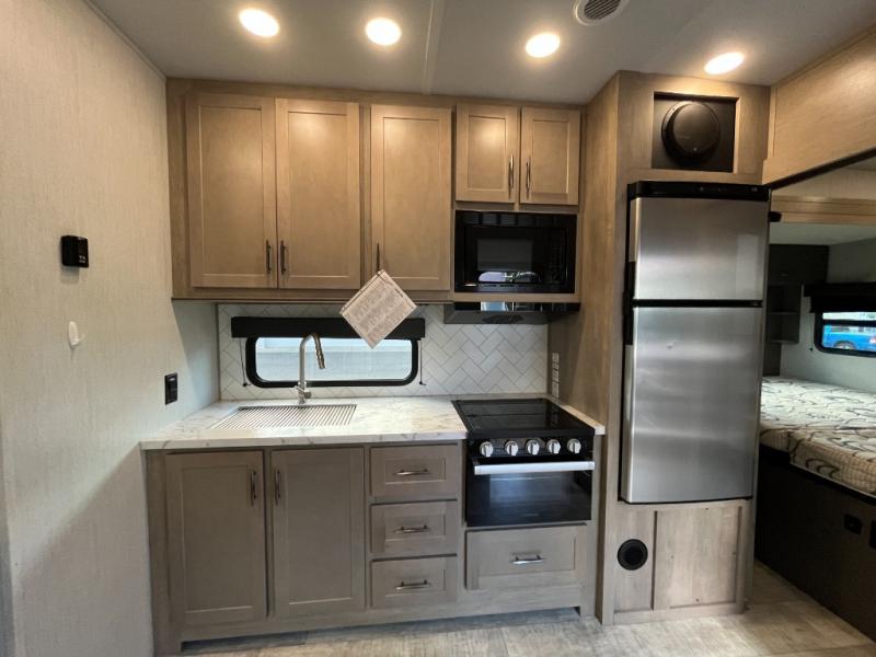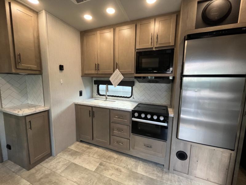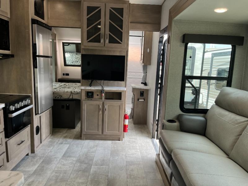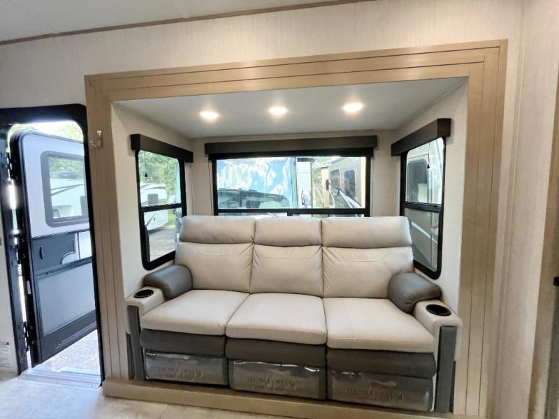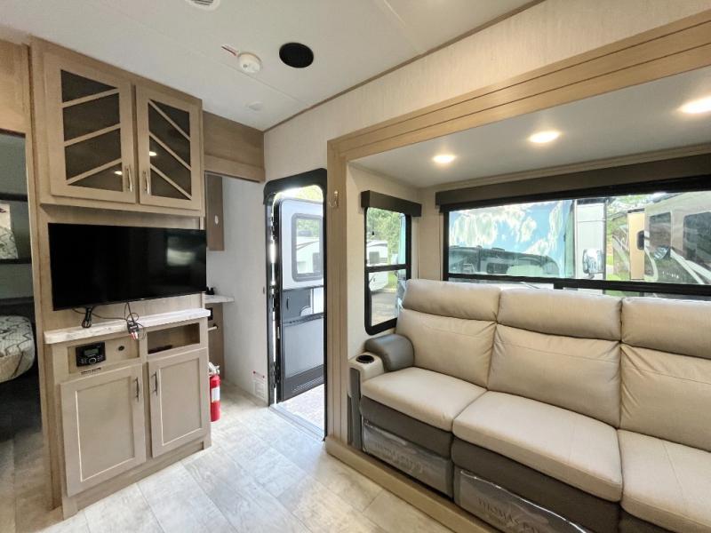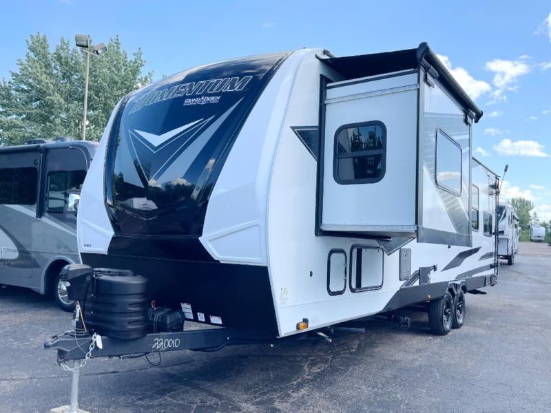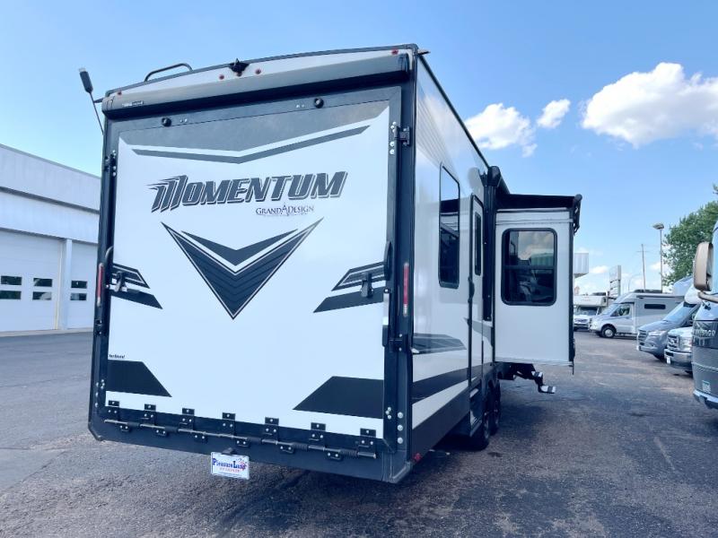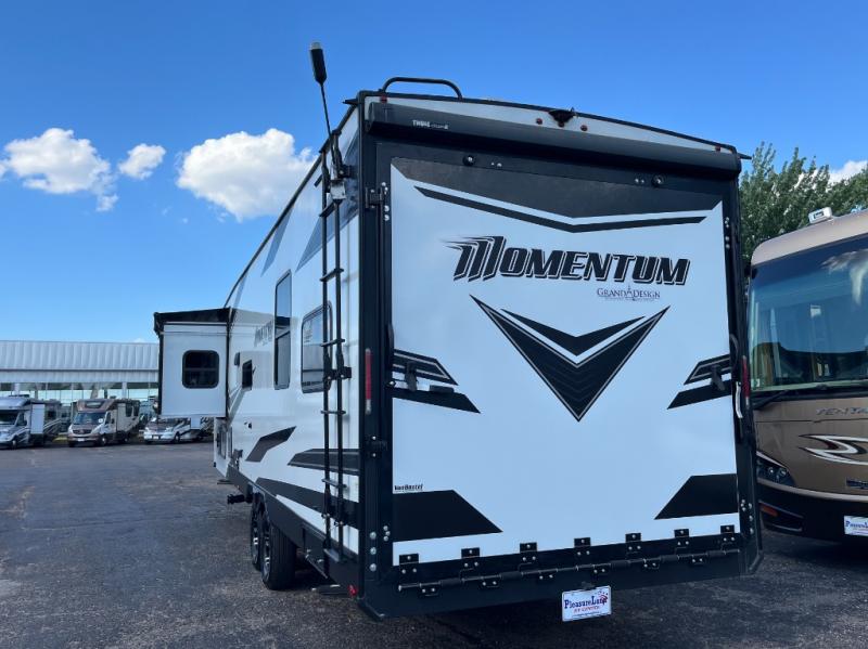 Are you looking for adventure and fun? The Momentum G-Class toy hauler by Grand Design will help you find it! You can explore during any season you choose with the Insulation Package that includes a heated and enclosed underbelly with suspended tanks, a high-capacity furnace, a moisture barrier floor enclosure, and cabinet-mounted heat ducts. Each model includes a fuel station with an interior and exterior gauge, a dovetail rear rend, and 2,500-LB tie-downs anchored into the chassis. Throughout the Momentum G-Class interior, you'll enjoy many comfortable features like large panoramic windows, a shower skylight, USB chargers in the bedroom, and residential cabinetry.