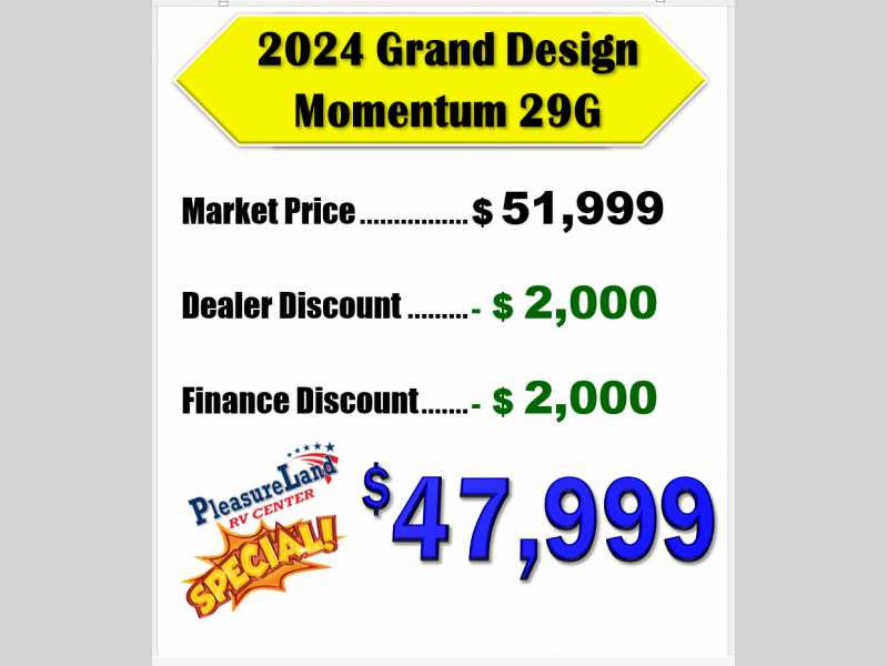 Used 2024 Grand Design Momentum G-Class 29G Toy Hauler Travel Trailer